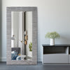 This wooden mirror has an elegant and decorative metal frame that looks great in any space. A clean modern design that fits with any decor. This mirror will freshen up the look of any room in the house and offers durability and style all in one.