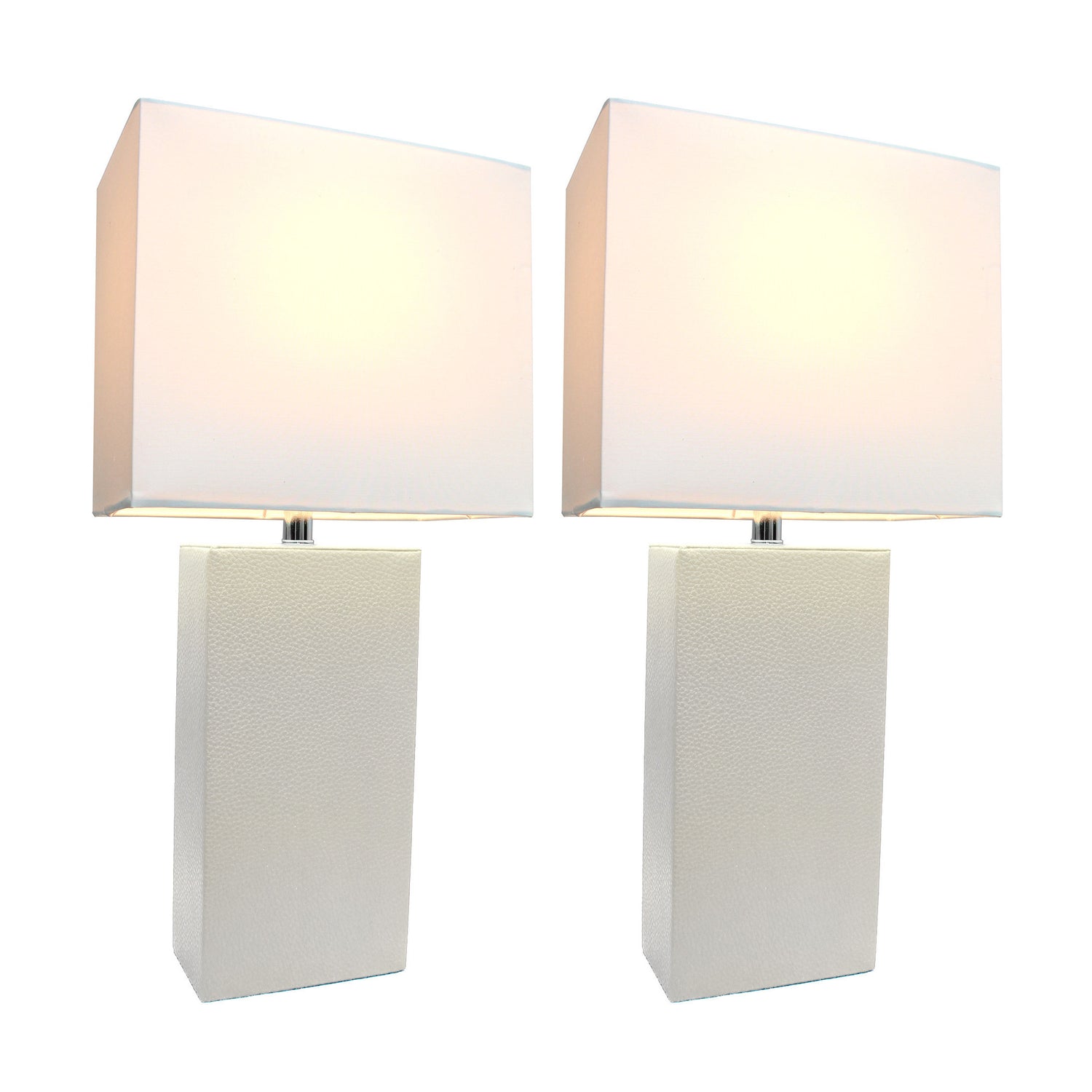 These fashionable table lamps, with their genuine Leather bodies and white fabric shades, will add style and pizzazz to any room. We believe that lighting is like jewelry for your home. Our products will help to enhance your room with elegance and sophistication.