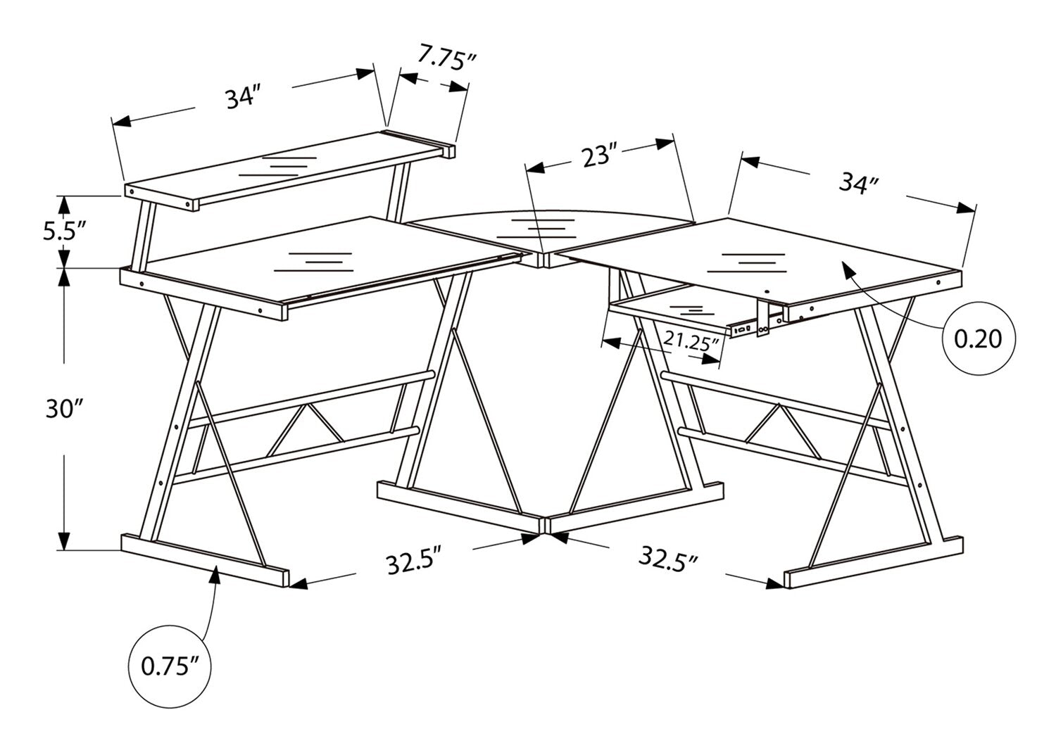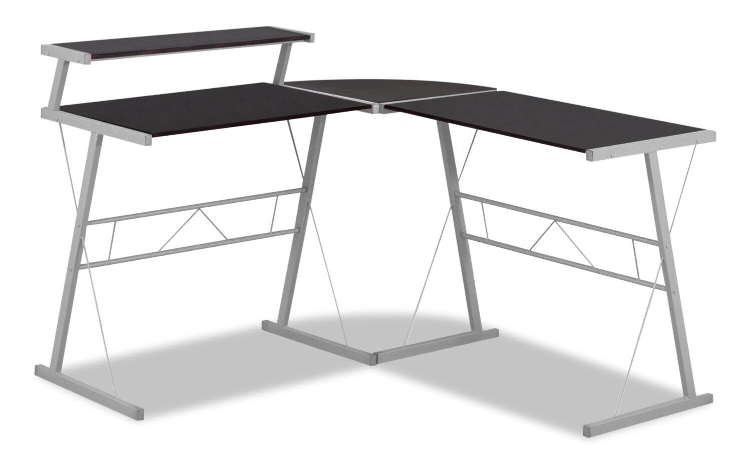 A configuration perfect for working or gaming, this Elias desk was designed with form and function in mind. Made in a versatile L-shape, there are a variety of ways you can place this piece in your home. The raised shelf on the left side is ideal for monitors, decor or office essentials, while the tempered glass desk surface is extremely spacious for all your work to be spread out. Providing stability is the solid metal frame featuring an eye-catching geometric design and angular legs for durability.