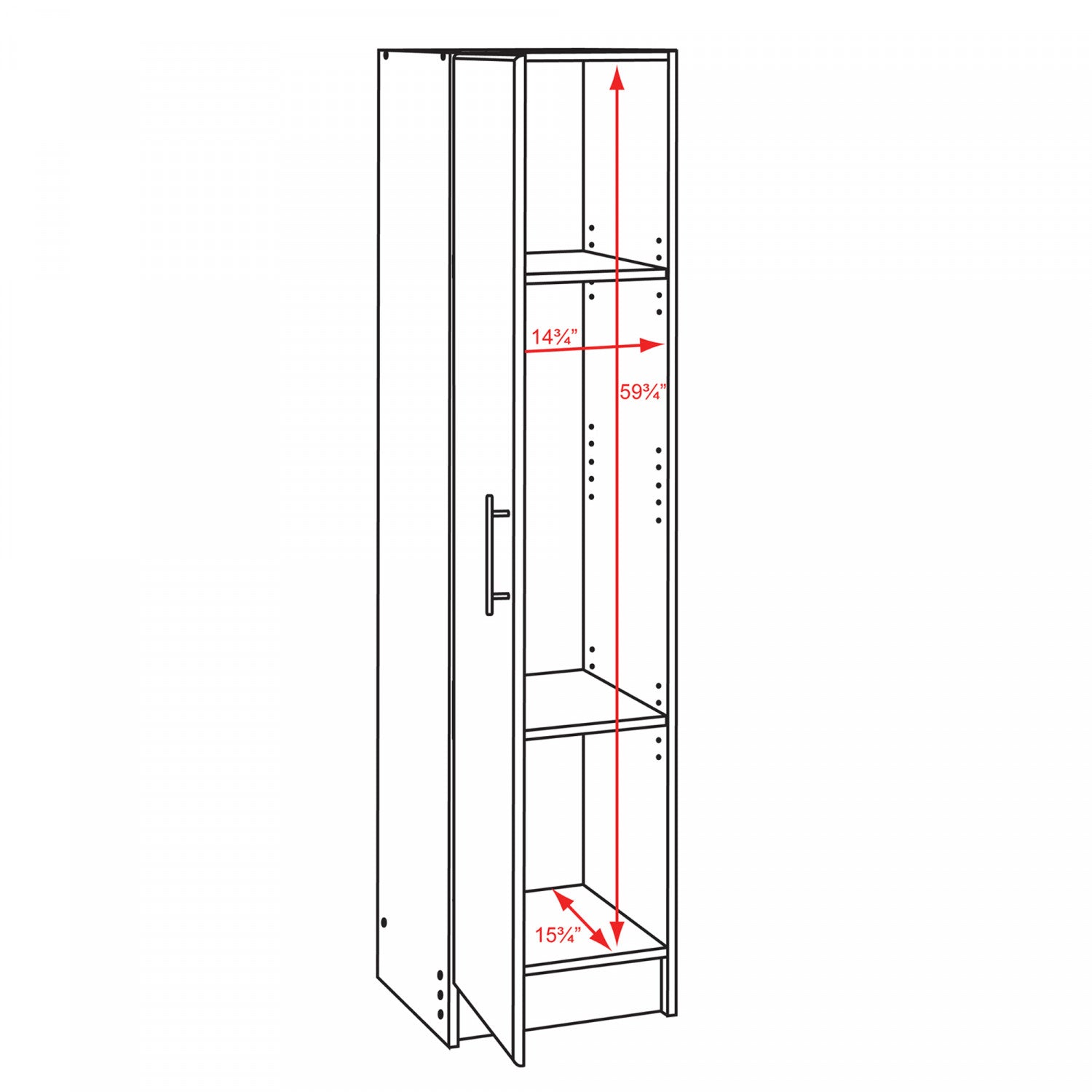 This slim cabinet has no fixed center shelf, making it ideal for storing brooms and other tall items. With more room for storage thanks to the extra four inches of depth, the cabinet also includes two adjustable shelves for holding smaller items. Use it alone or add the optional 16 in. Stackable Wall Cabinet on top for a total of 89 vertical inches of storage.