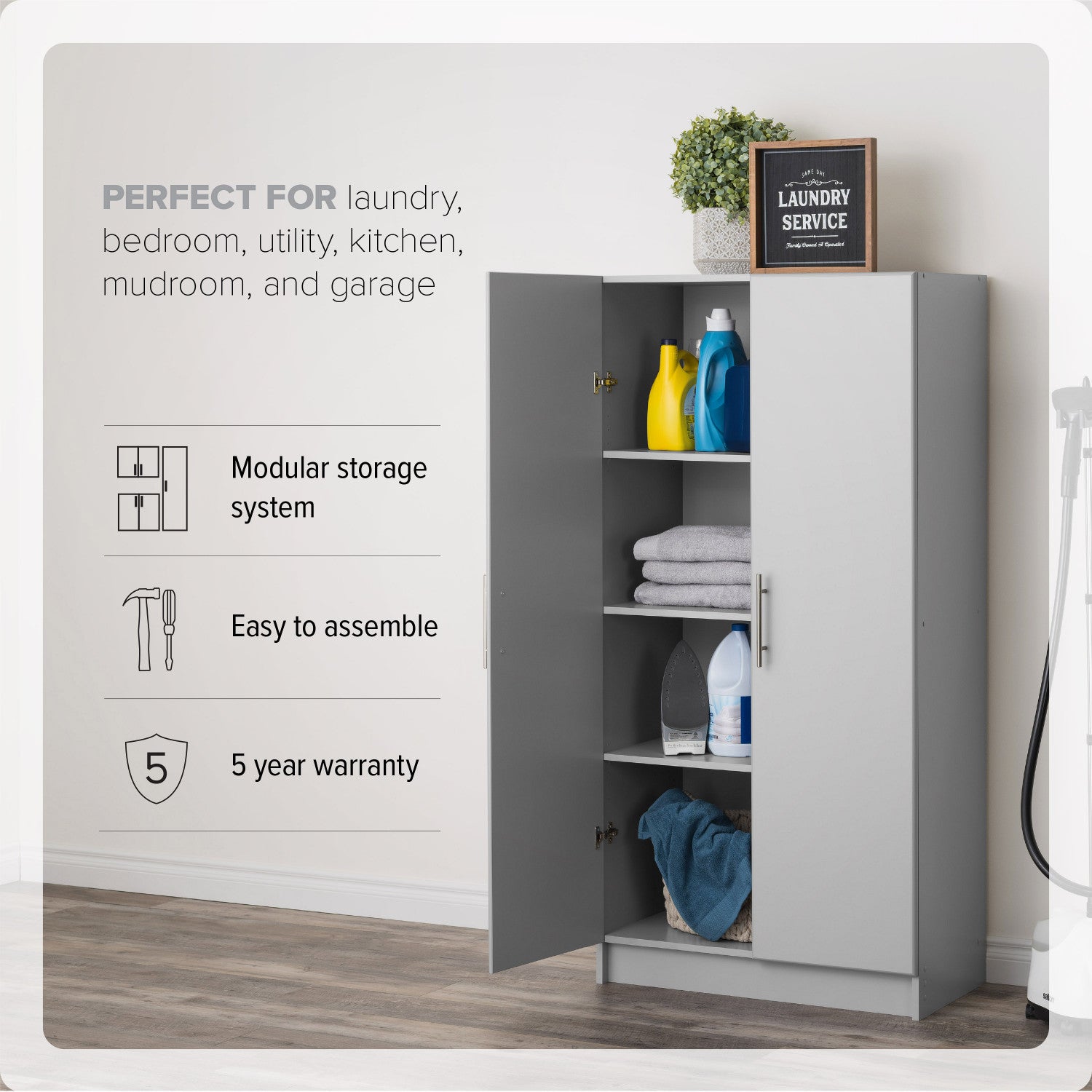 Sophisticated and functional, the 32 in. Elite Storage Cabinet has 1 fixed and 2 adjustable shelves to store and organize all your personal items. This multipurpose cabinet is the perfect addition to any kitchen, entryway, laundry room or anywhere else you may need extra storage space. Use alone or pair with the 32 in. Stackable Wall Cabinet for a complete storage solution.