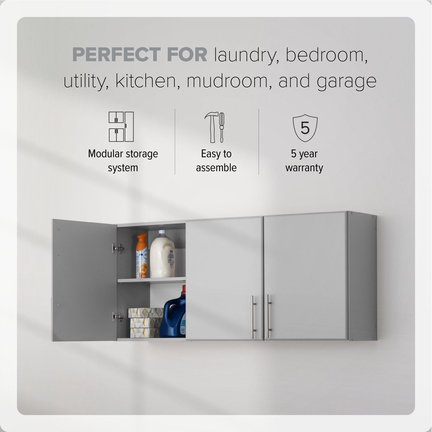 The Elite 54 in. Wall Cabinet was made with your laundry room in mind. At 54 inches wide, this 3-door cabinet is designed to fit above your standard washer and dryer. The 12-inch depth ensures you have ample clearance for loading and sorting laundry, and with doors that can be installed to open to the left or right, it's versatile enough to suit any space. Customize the three adjustable shelves to store your laundry supplies and other items. Ideal as a stand-alone piece, and not limited to the laundry room, this cabinet is part of the ultra-versatile Elite Collection.