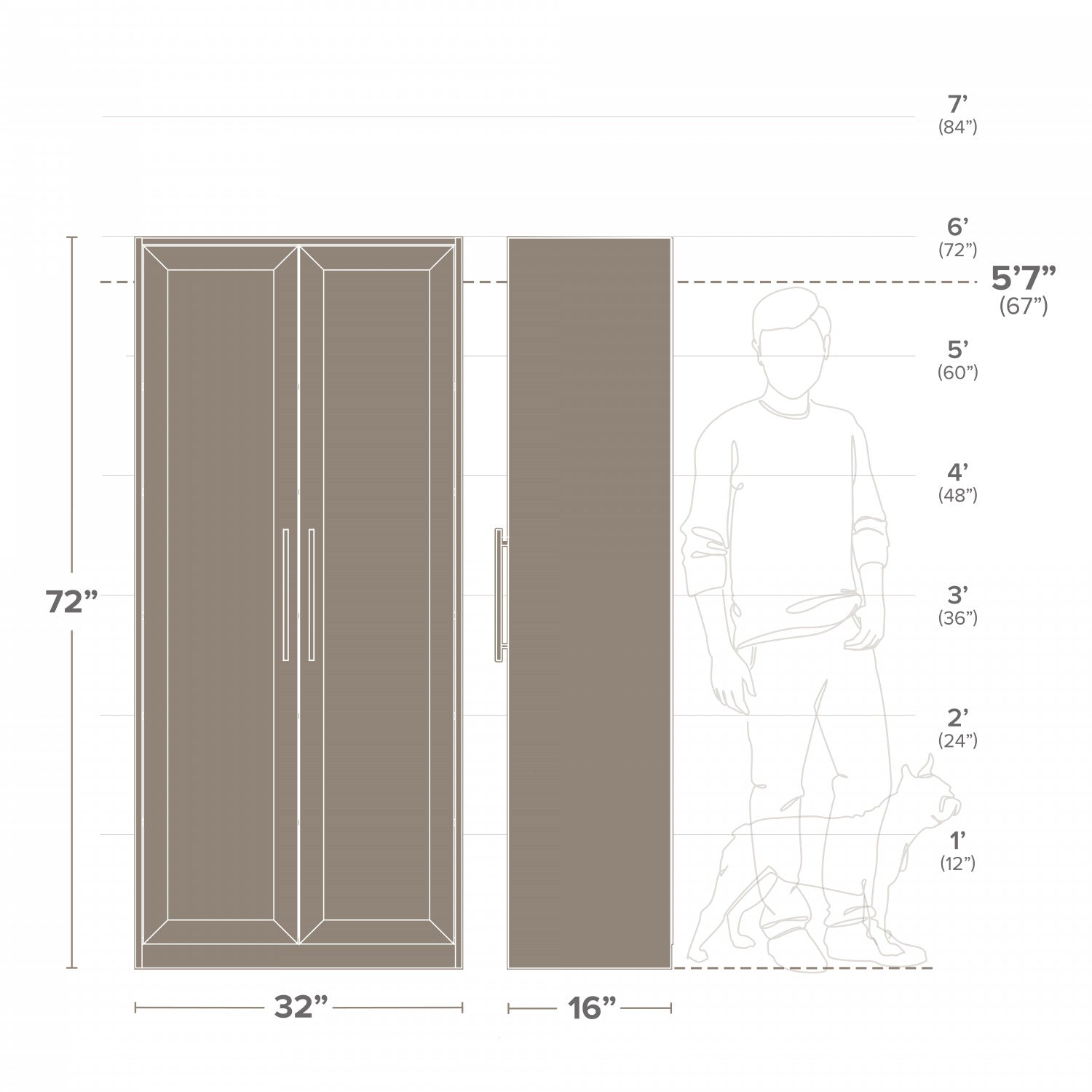 Width: 32" (81.3 cm) Height: 72" (182.9 cm) Depth: 16" (40.6 cm)
