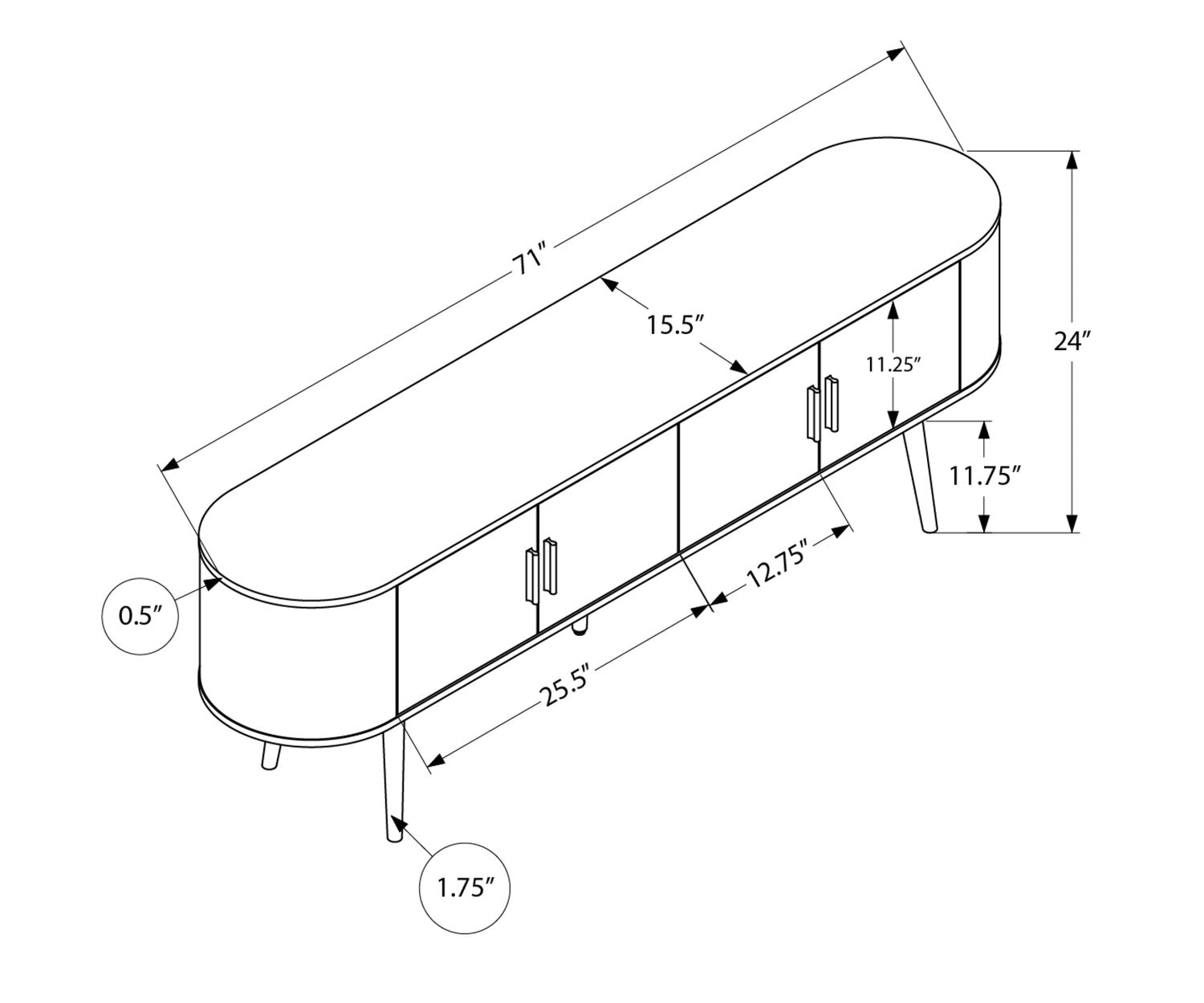Width: 71" (180.3 cm) Height: 24" (61.0 cm) Depth: 15.5" (39.4 cm)