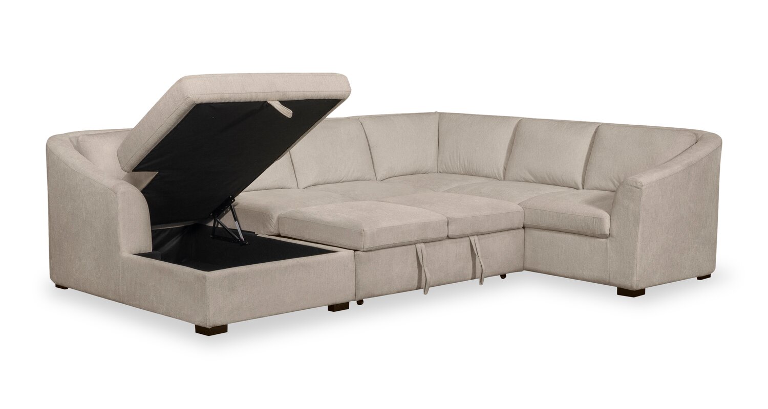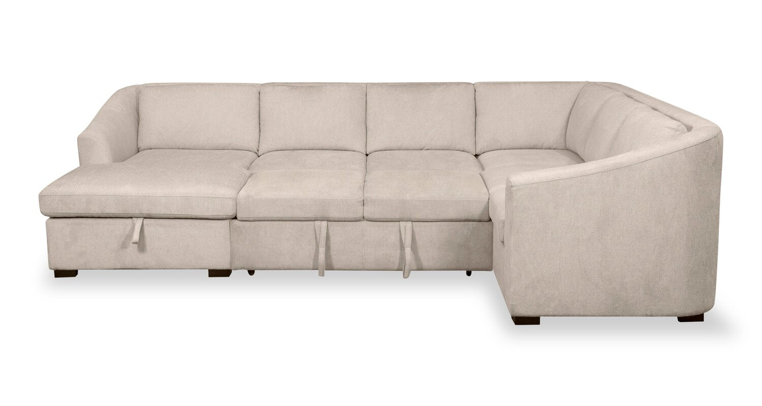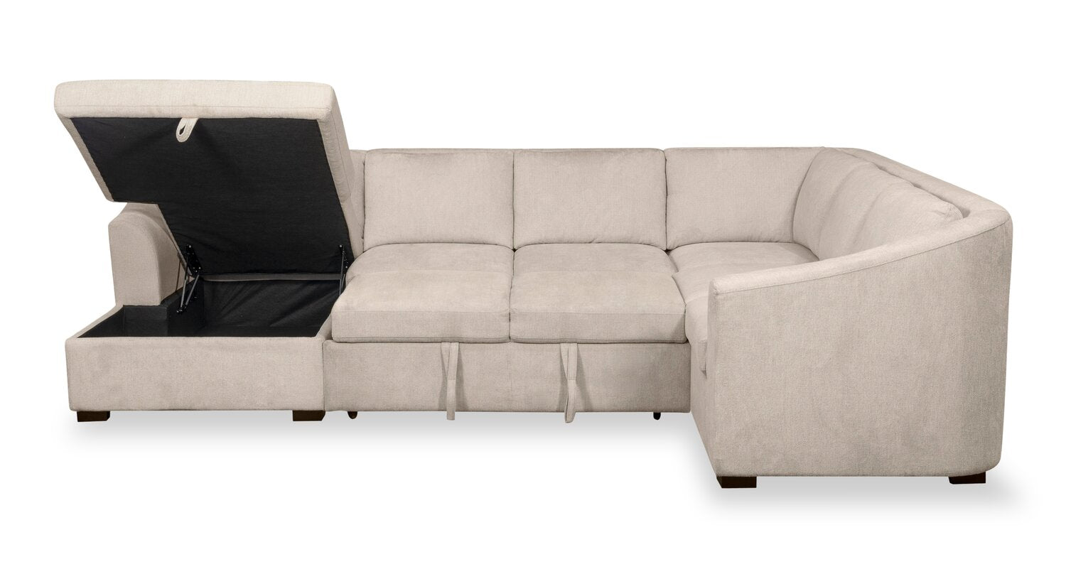 Envy 3-Piece Left-Facing Chenille Fabric Sleeper Sectional with Storage Chaise - Almond Beige