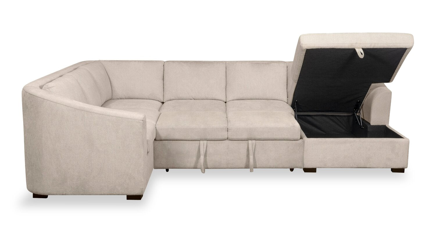 Envy 3-Piece Right-Facing Chenille Fabric Sleeper Sectional with Storage Chaise - Almond Beige