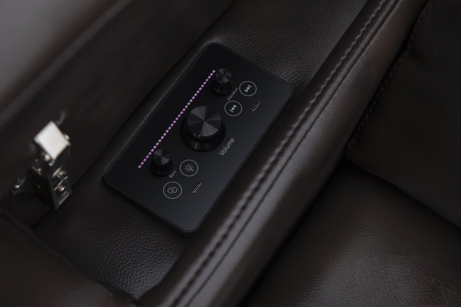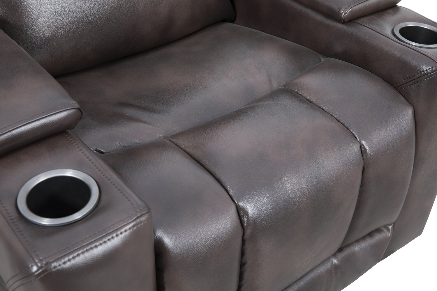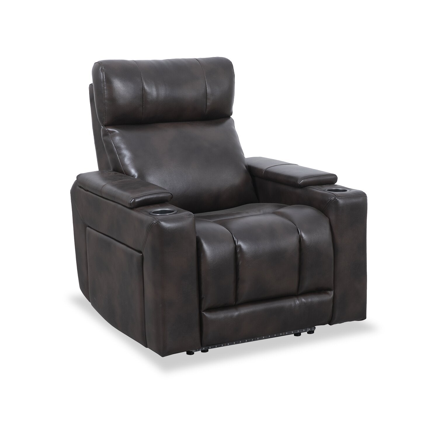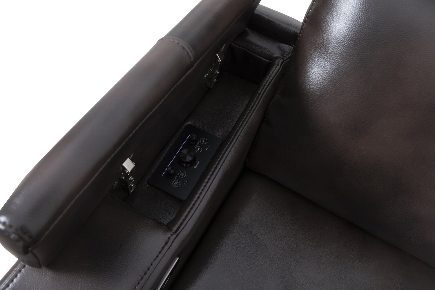 Scott Living Escape 39" Power Reclining Chair with Power Headrest and Surround Sound - Dark Brown Leather-Look Fabric
