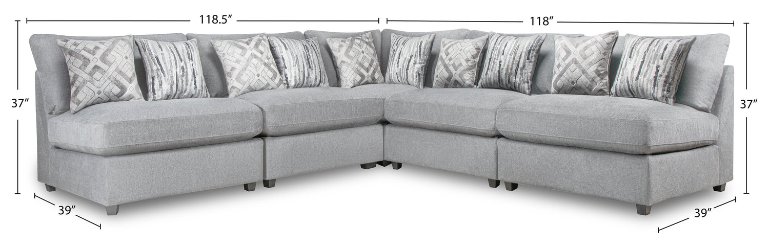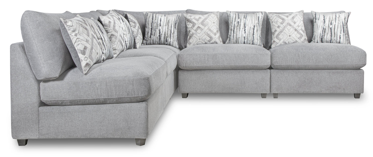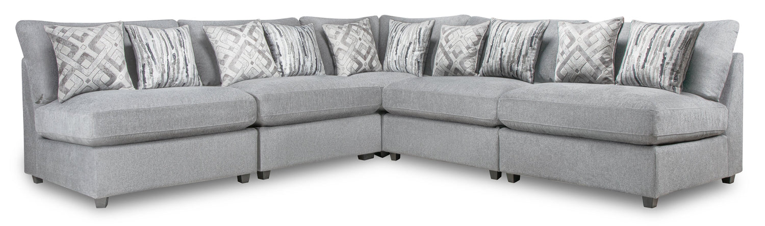 If you're looking for a way to ensure your living room suits your needs, this Evolve five-piece sectional from Scott Living will be right up your alley. With its soft lines and low profile, this piece adds a subtle chic style that will complement most interiors. The grey linen-look fabric and lavish feather- and foam-stuffed cushions welcome you to lounge comfortably all night. Trendy dark-stained plastic legs elevate the piece, adding a charming appeal. Add more chairs for extra seating or ottomans for storage and let your living room evolve into something that is just for you.