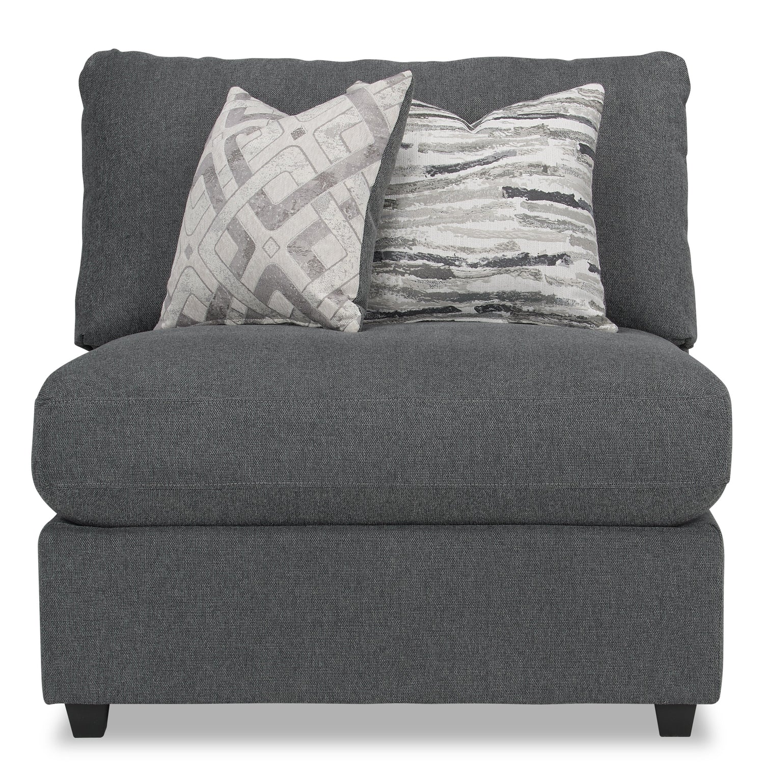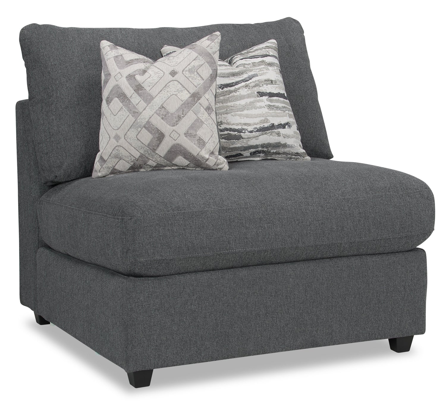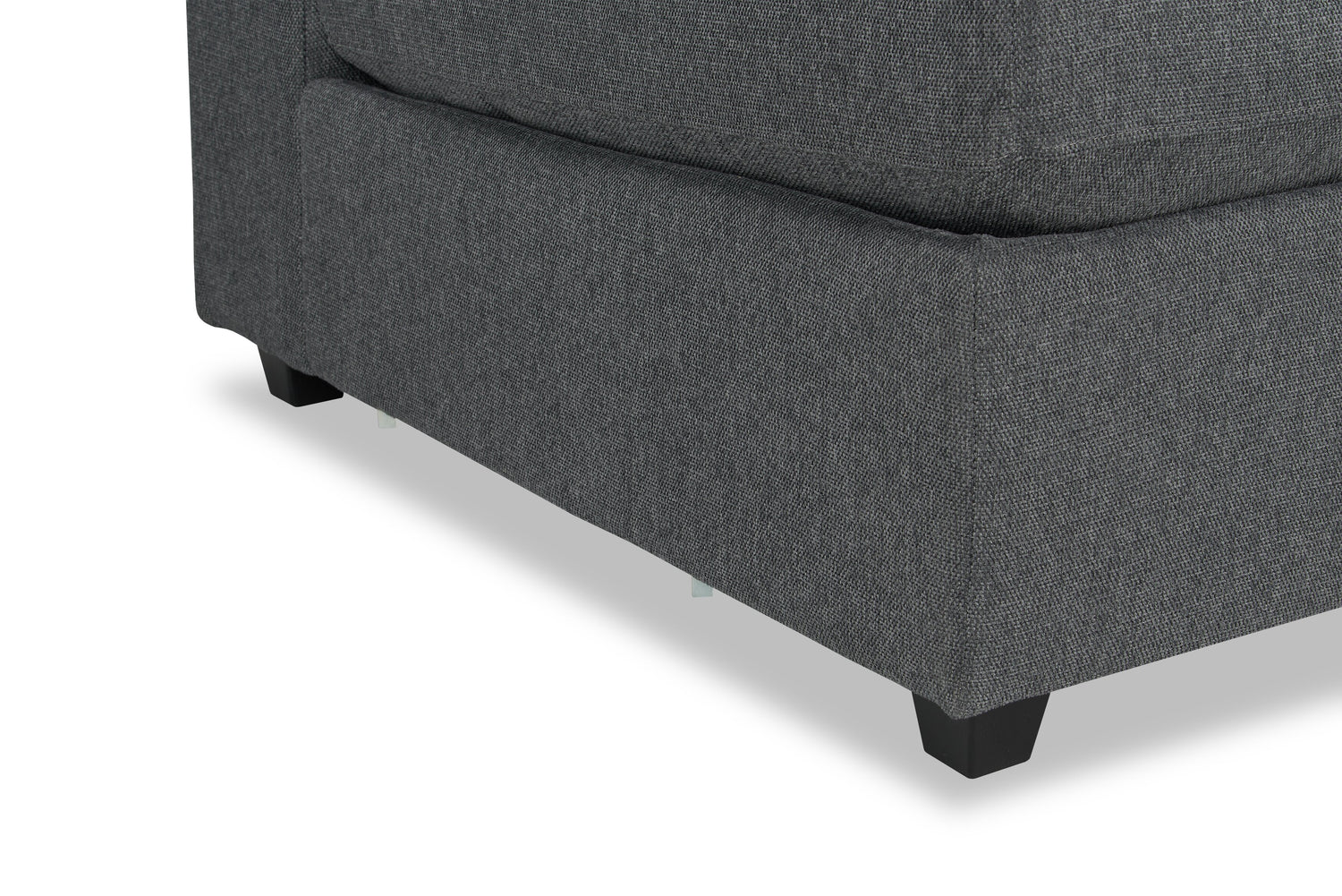 If you're looking for a way to ensure your living room suits your needs, this Evolve modular armless chair from Scott Living will be right up your alley. With its soft lines and low profile, this piece adds a subtle chic style that will complement most interiors. The charcoal linen-look fabric and lavish feather- and foam-stuffed cushion welcome you to lounge comfortably all night. Trendy dark-stained plastic legs elevate the piece, adding a charming appeal. Add matching corner chairs for more seating or ottomans for storage and let your living room evolve into something that is just for you.