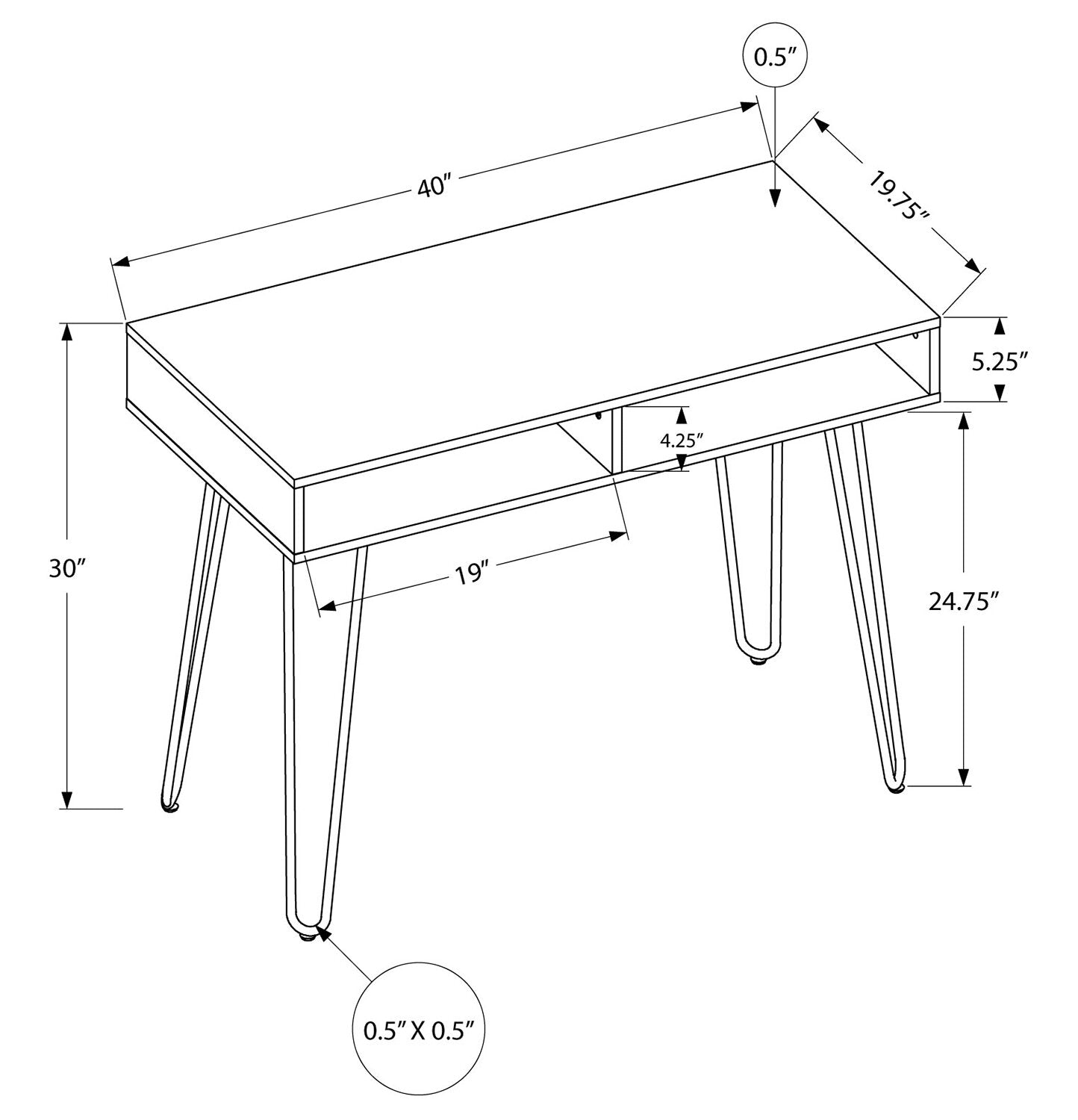 Stay on-trend with the retro-inspired design of this Ezra desk. Unique and delicate hairpin-style legs lend a throwback vibe to this eye-catching workstation. Your office will stay clutter-free thanks to the two open cubbies that provide depth for storing a plethora of work essentials or even a laptop. Ideal for small spaces and modern surroundings, the Ezra’s bold desktop and airy support legs are sure to make a statement in your office space.