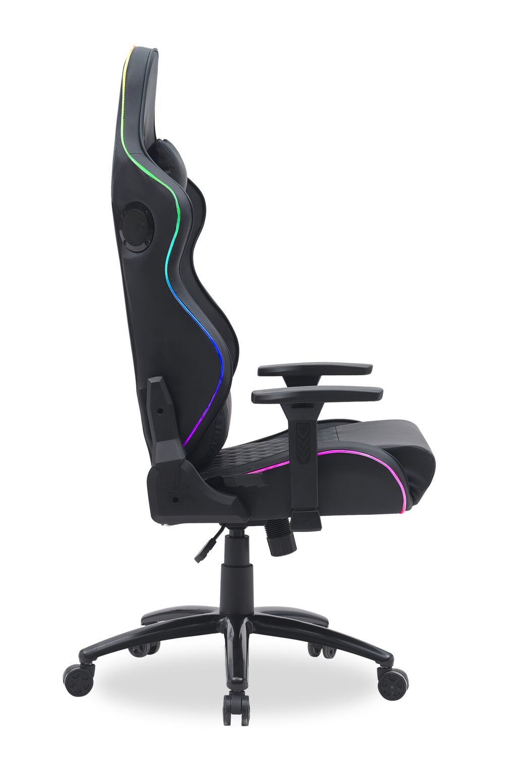 | Accent Details | What looks like white piping on the sides of the chair is actually an LED light strip. |