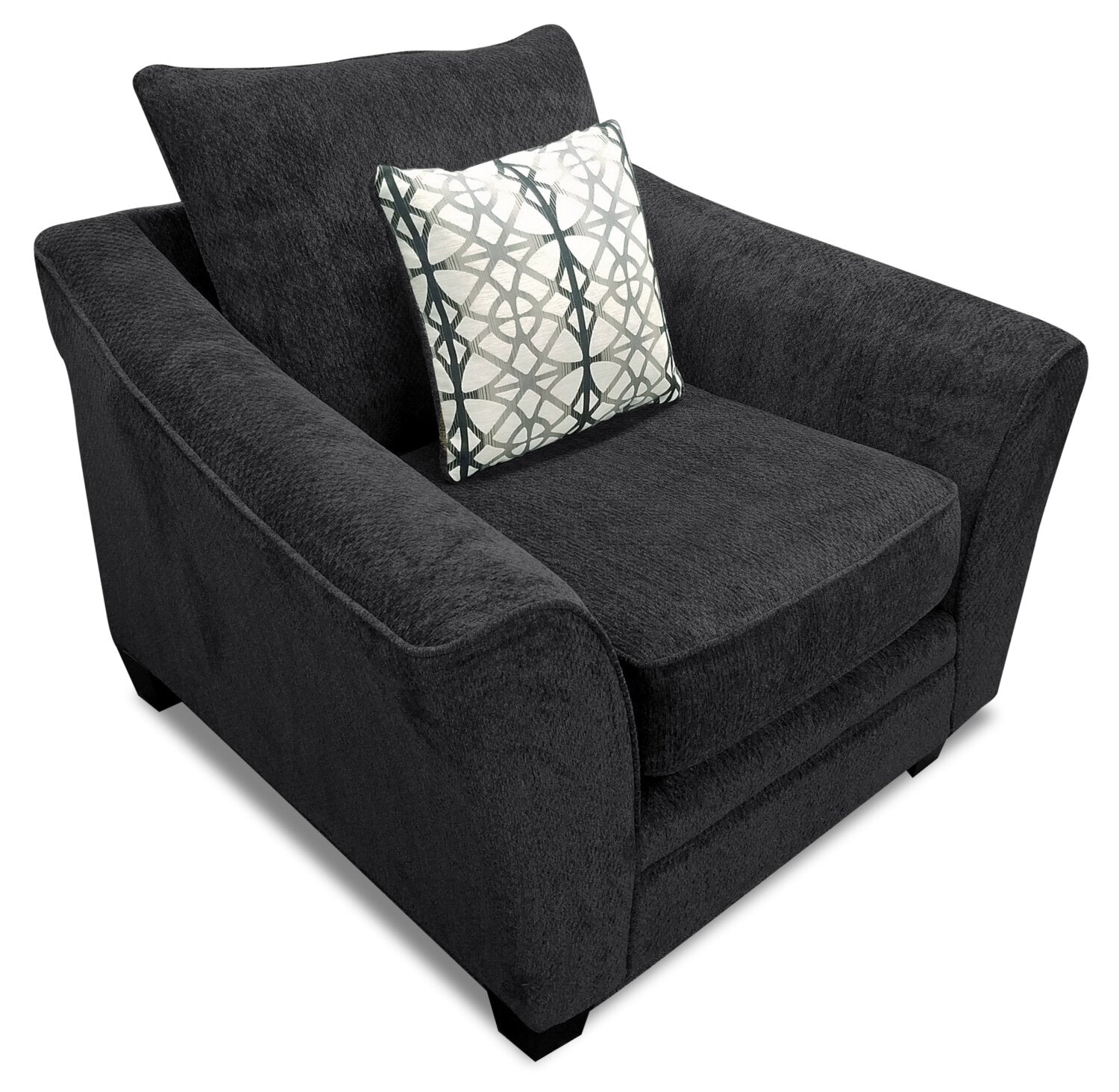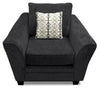 Give your home an inviting and chic appeal with this charcoal Febe chair. Cozy chenille covers the entire furniture frame for a seating space you'll want to relax on. The seat cushion is filled with plush high-density foam, while the back cushion contains soft fibre fill to comfort your back. With flared armrests and finished in a dark grey tone, this chair is a fantastic complement to many different home decor styles.