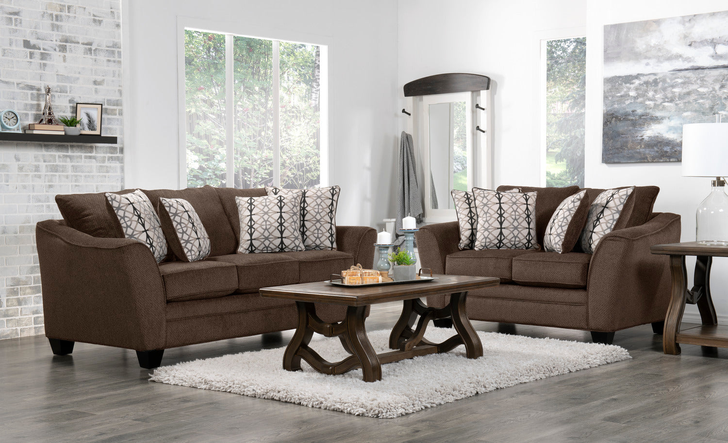 Give your home an inviting and chic appeal with this brown Febe condo loveseat. Cozy chenille covers the entire furniture frame for a seating space you'll want to relax on. Each of the seat cushions are filled with plush high-density foam, while the back cushions contain soft fibre fill to comfort your back. With flared armrests and designed for smaller living spaces, this condo loveseat is a fantastic complement to many different home decor styles.