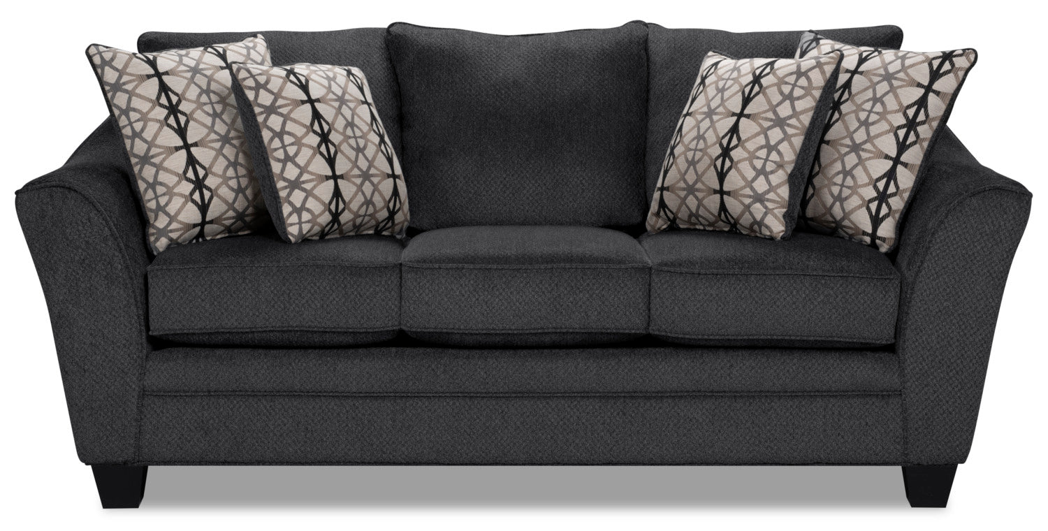 Give your home an inviting and chic appeal with this charcoal Febe condo sofa bed. Cozy chenille covers the entire furniture frame for a seating space you'll want to relax on. Each of the seat cushions are filled with plush high-density foam, while the back cushions contain soft fibre fill to comfort your back. Help your guests feel welcome by pulling out the queen-size hide-a-bed mattress from under the seating area. Designed for smaller living spaces, this condo sofa bed is a fantastic complement to many different home decor styles.