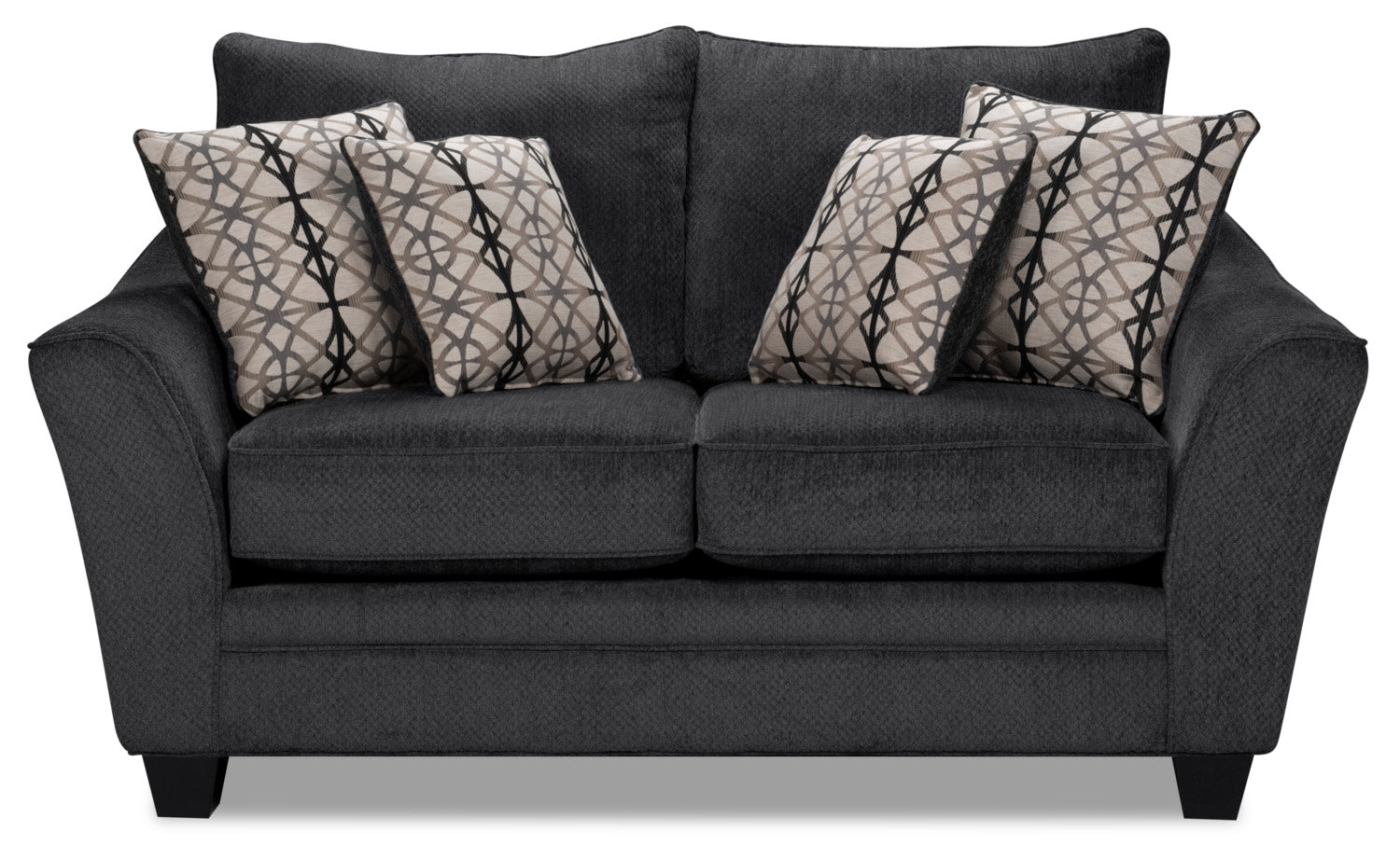 Made in Canada Febe 75" Chenille Fabric Loveseat with Flared Arms and Accent Pillows - Charcoal Grey