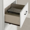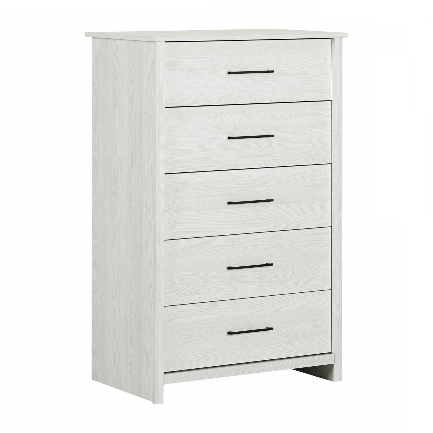 Floor space is scarce in your room? No problem! Select this tall but thin 5-drawer chest of drawers. In each drawer, organize clothes, jewelry, underwear, and bedding as you wish. The large amount of storage compartments will free up a lot of space in your closet and make it easier for you to access your belongings. Get back to basics in your bedroom with this large 5-drawer Farmhouse-inspired chest. This trend is all about the cohabitation of natural materials and modern accents. Thanks to its black metal handles, you will be able to put it forward effectively in your decor.