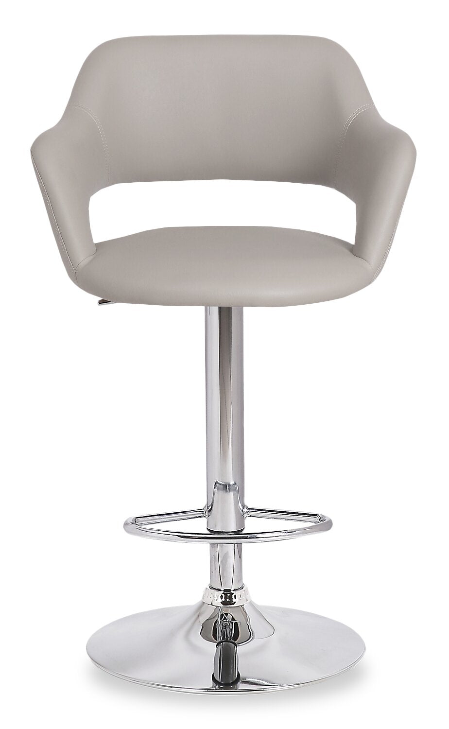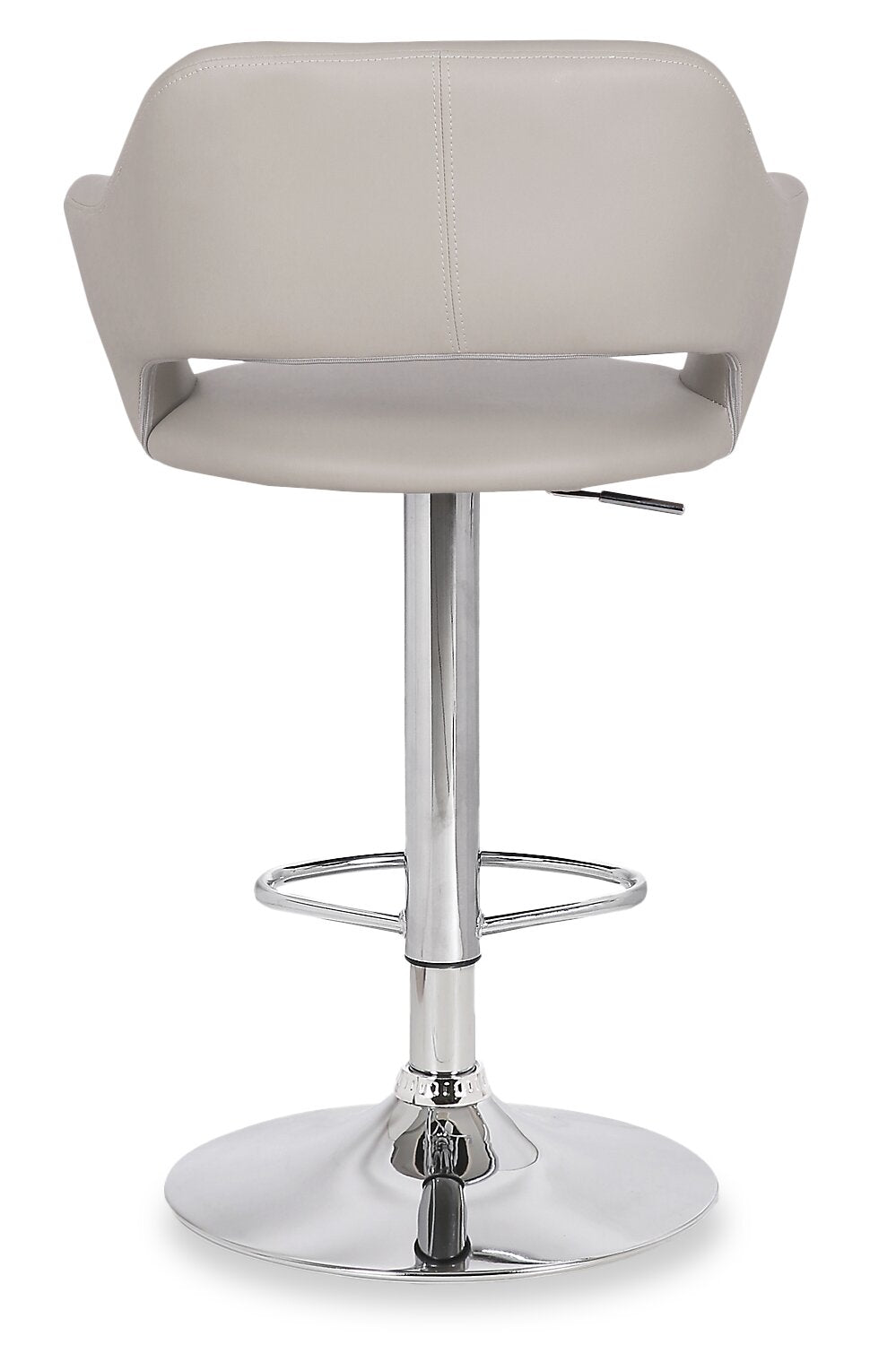 Add some adventure to your dinner time with the Finn beige bar stool. Smooth faux leather is stuffed full of high-density foam, perfect for sinking into a multi-course meal. High armrests curve around into a tall back to keep your spine well supported all throughout your meal. An open space on the lower back helps keep things cool by letting ventilation circulate. Take yourself to new heights with the manual gas lift, which lets you raise or lower the chair to perfectly match your counters. With the Finn livening up your dining space, your meals are about to get so much brighter.
