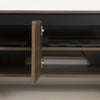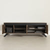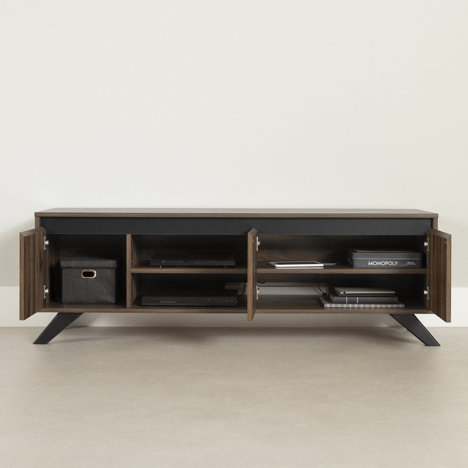 Designed with finesse and attention to detail, this three-door TV stand, equipped with two closed storage spaces and two open compartments, will stand out in your Scandinavian living room. Easily plug your consoles thanks to the grommet hole in the back. Each space, whether closed or open, features a fully removable shelf that can be adjusted to suit you and your family's needs. The two doors on the right open onto a double storage compartment, ideal for larger items that you'd like to keep out of sight once your visitors arrive. Gather in front of your up to 65 in TV and enjoy your favorite series.
