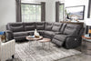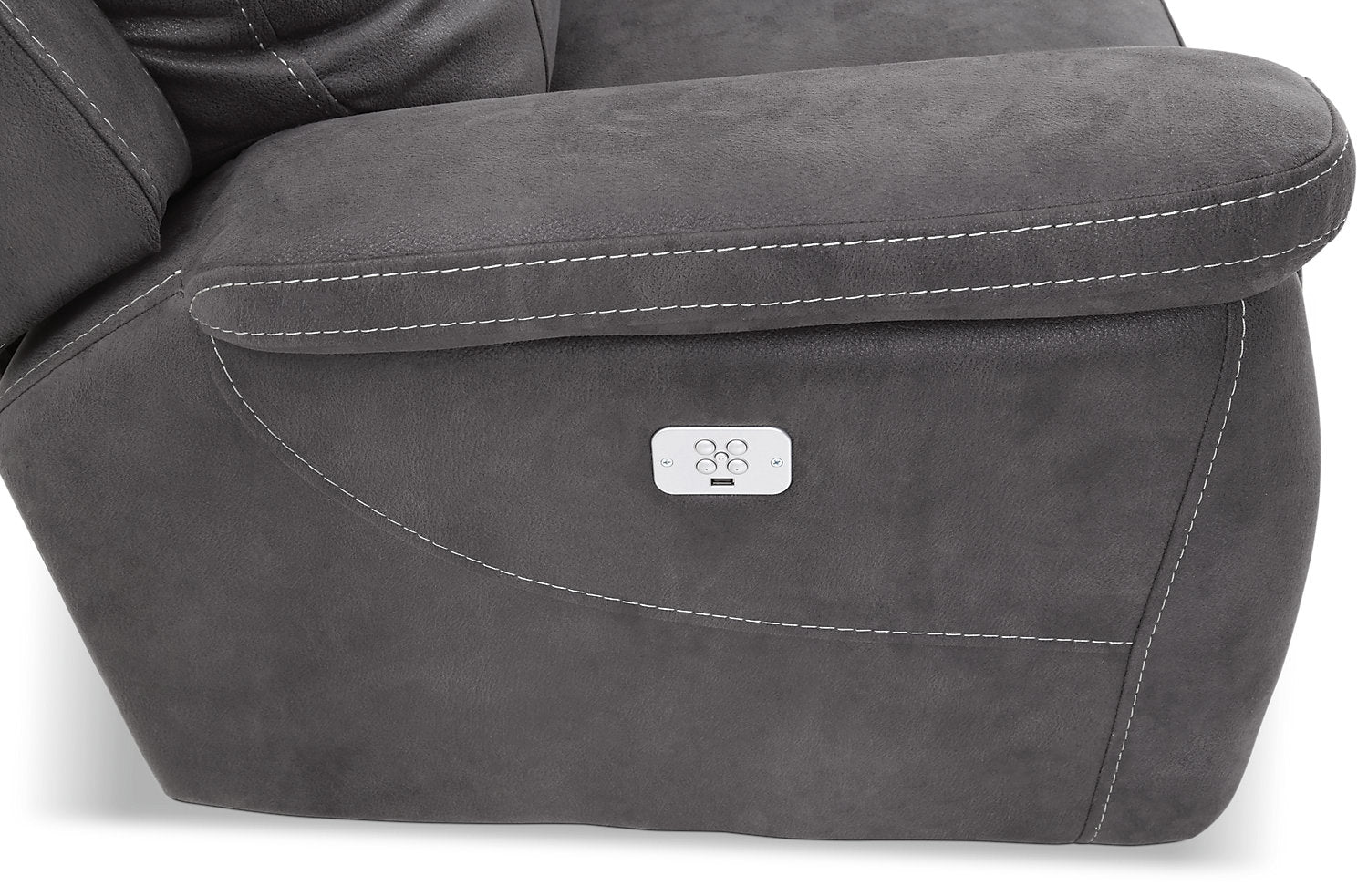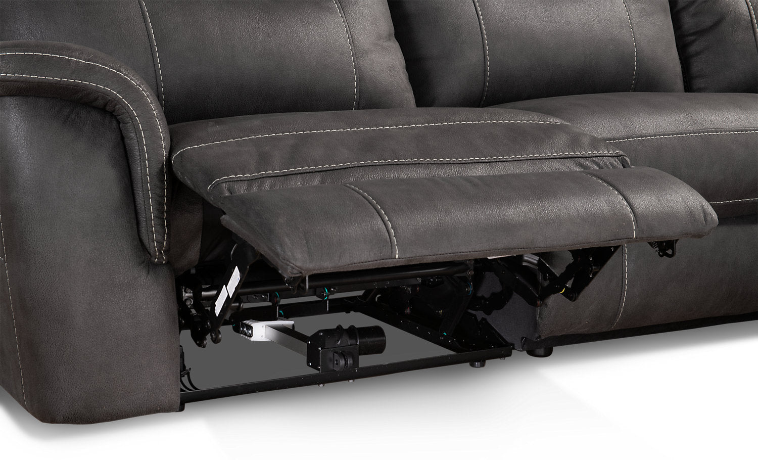 Deep seats and supple upholstery are just the start of the great things you can expect from this Floy six-piece power reclining sectional. Straight stitching and sleek curves add a modern aura to your living space. Meanwhile, the faux suede wrapped around this sectional feels soft to your fingers while also appearing well-loved. High-density foam fills every oversized seat from head to toe – including the two power recliners with power headrests you'll enjoy relaxing in. Finally, use the console to store snacks, drinks or your electronics while they charge.