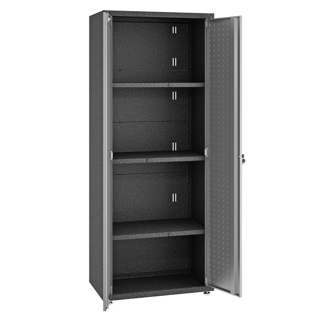 The Fortress 74.8 Tall Garage Cabinet gets its name for its durability, craftsmanship, and design. A highly functional unit, the cabinet boast three adjustable shelves and one fixed shelf concealed by two strong doors perfect for staying organized with ample storage space fit for all of your tools and garage accessories.