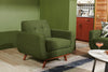 | Accent Details | The tufted back cushion and rounded base of the seat are chic and present a unique appearance. Plus, the tapered wooden legs beautifully complement the upholstery. |