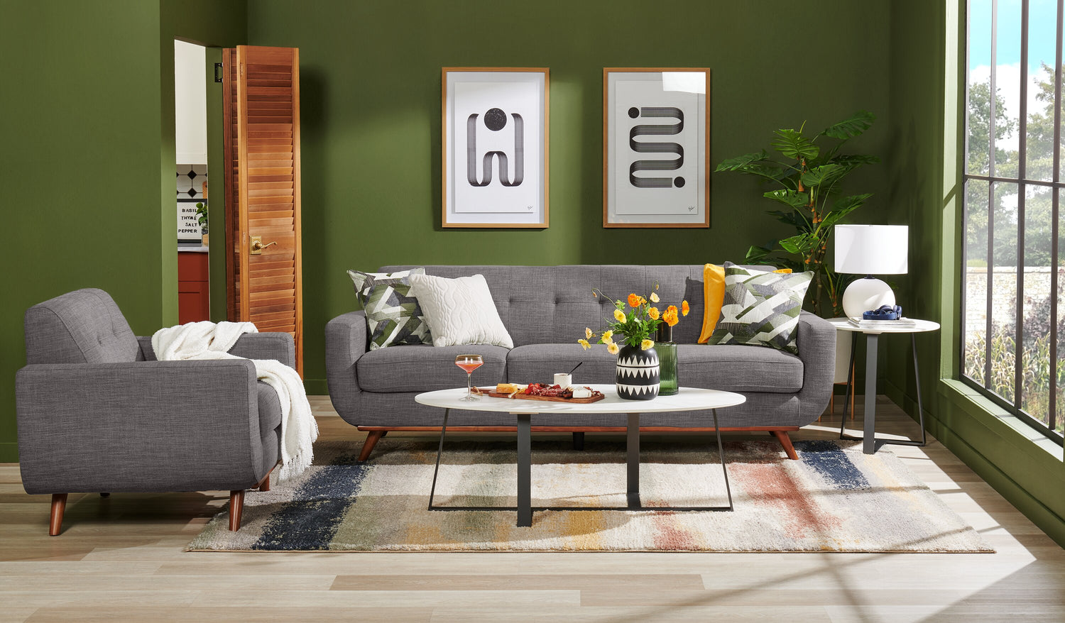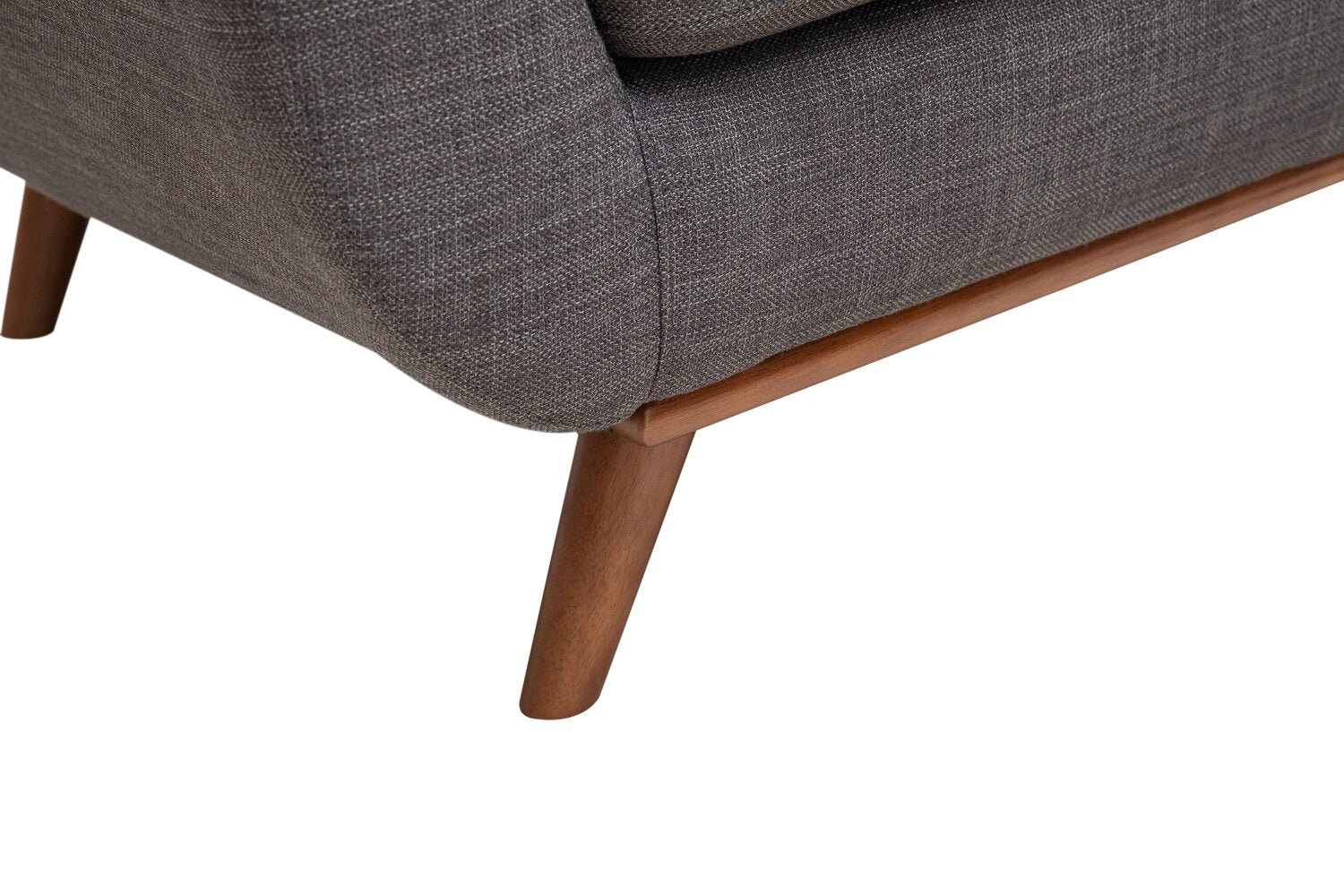 | Accent Details | The tufted back cushion and rounded base of the seat are chic and present a unique appearance. Plus, the tapered wooden legs beautifully complement the upholstery. |