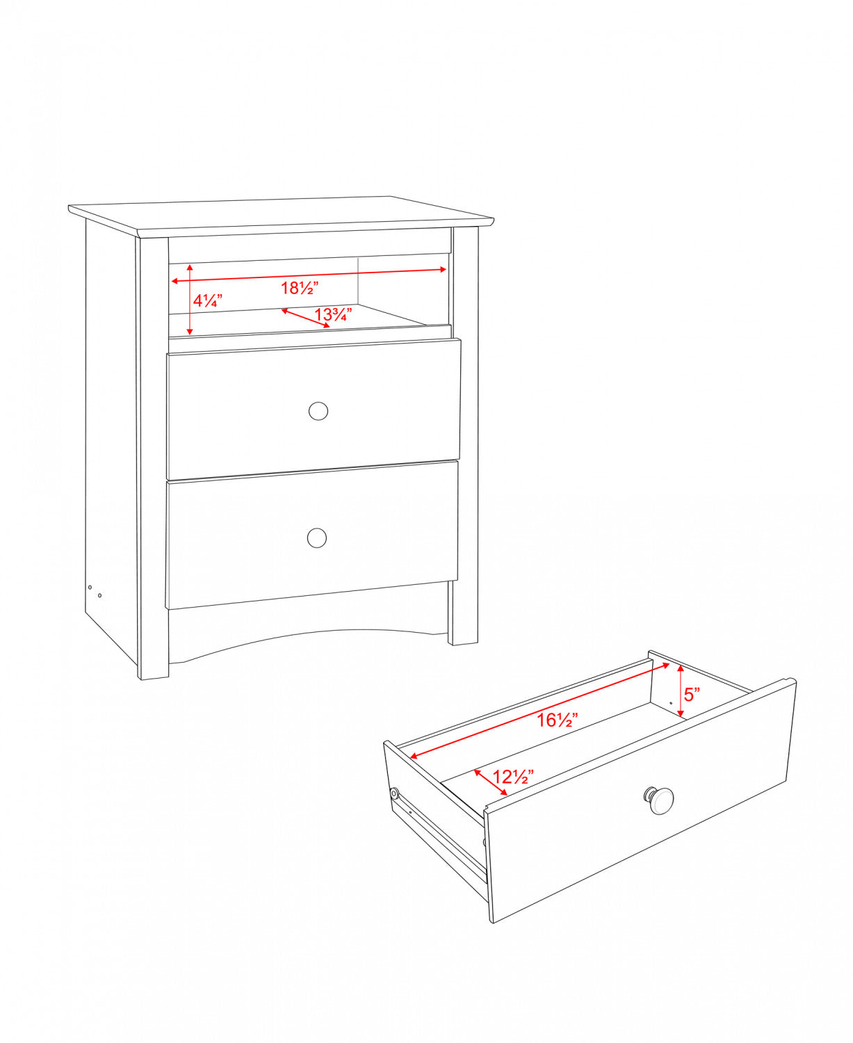| Additional Information | Product weight limit: Per Drawer: 8 lbs; On Top: 25 lbs |