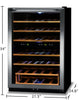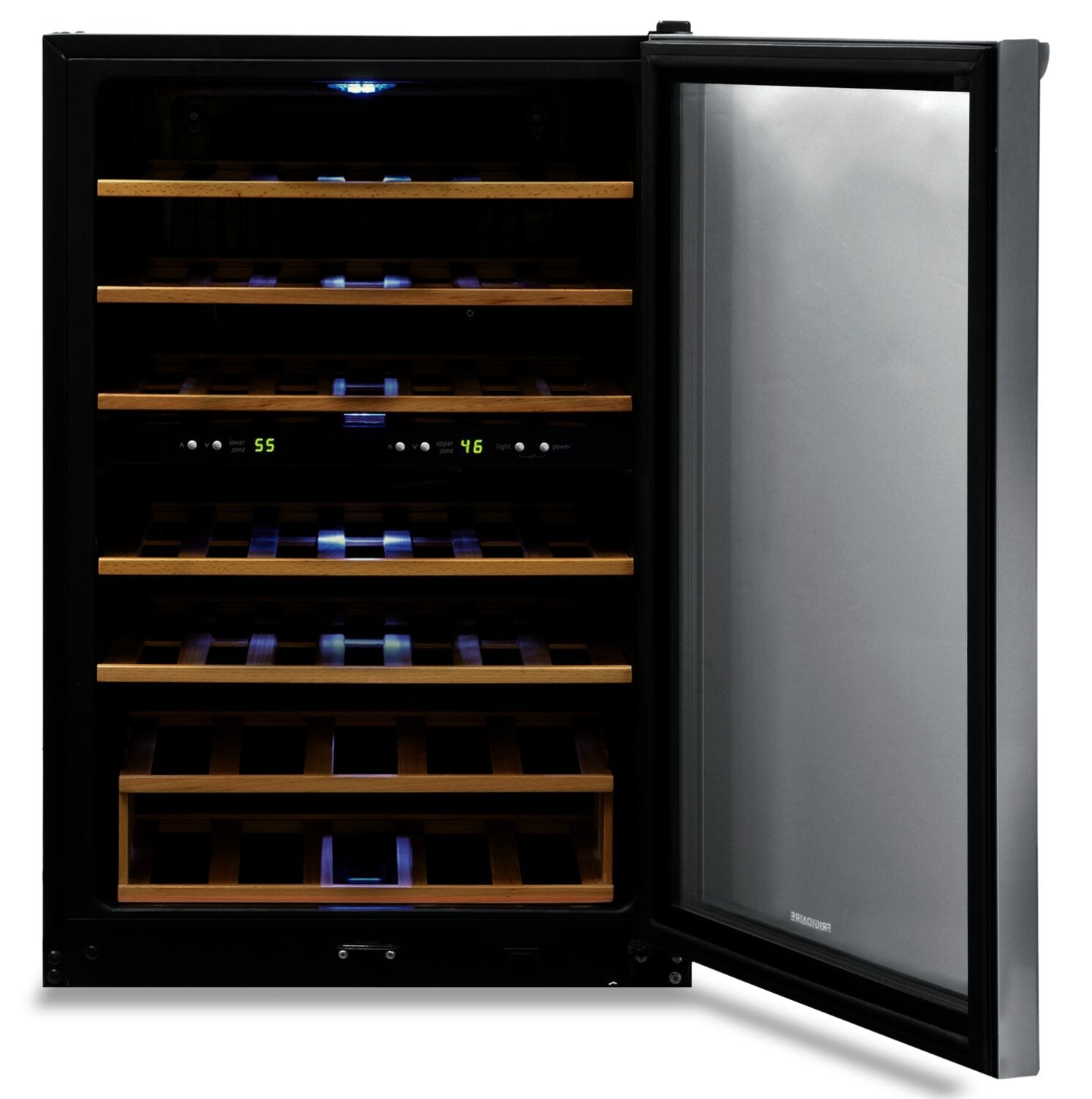 45-Bottle Capacity: Two Temperature Zones: Reversible Door Swing Option: Electronic Temperature Control with LED Digital Display: LED Interior Lighting: Sleek Design: |