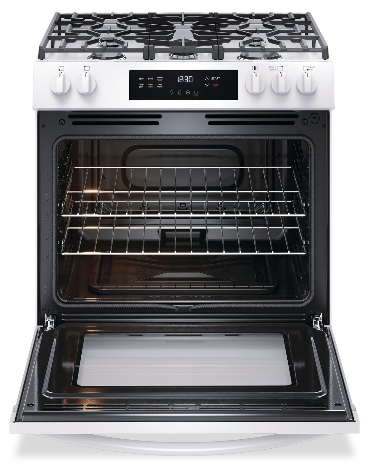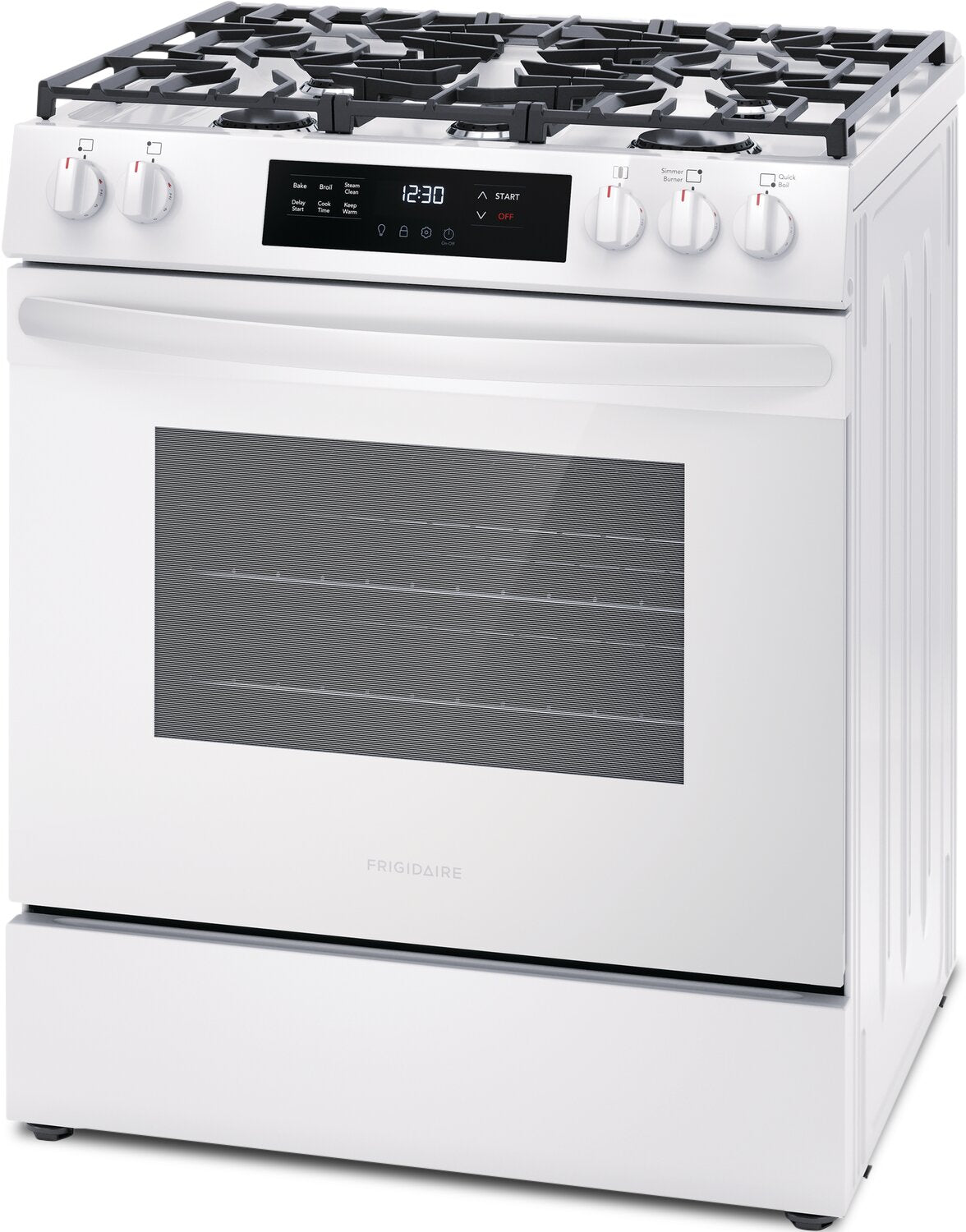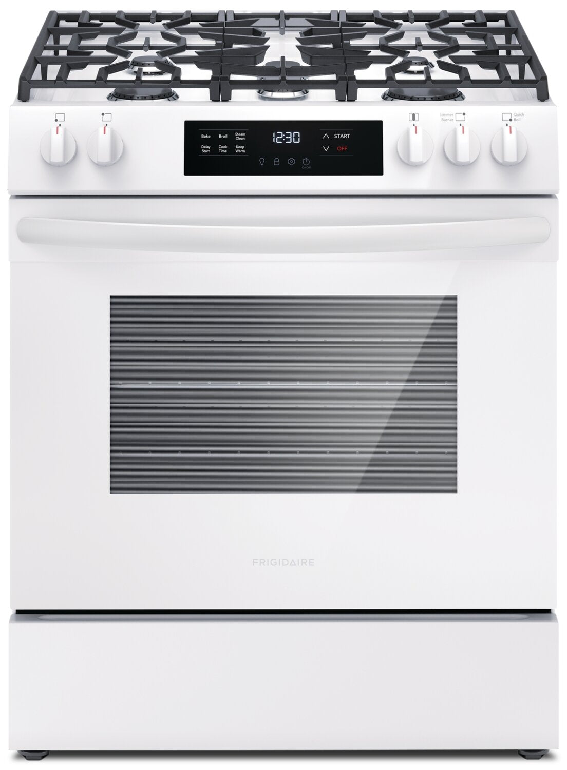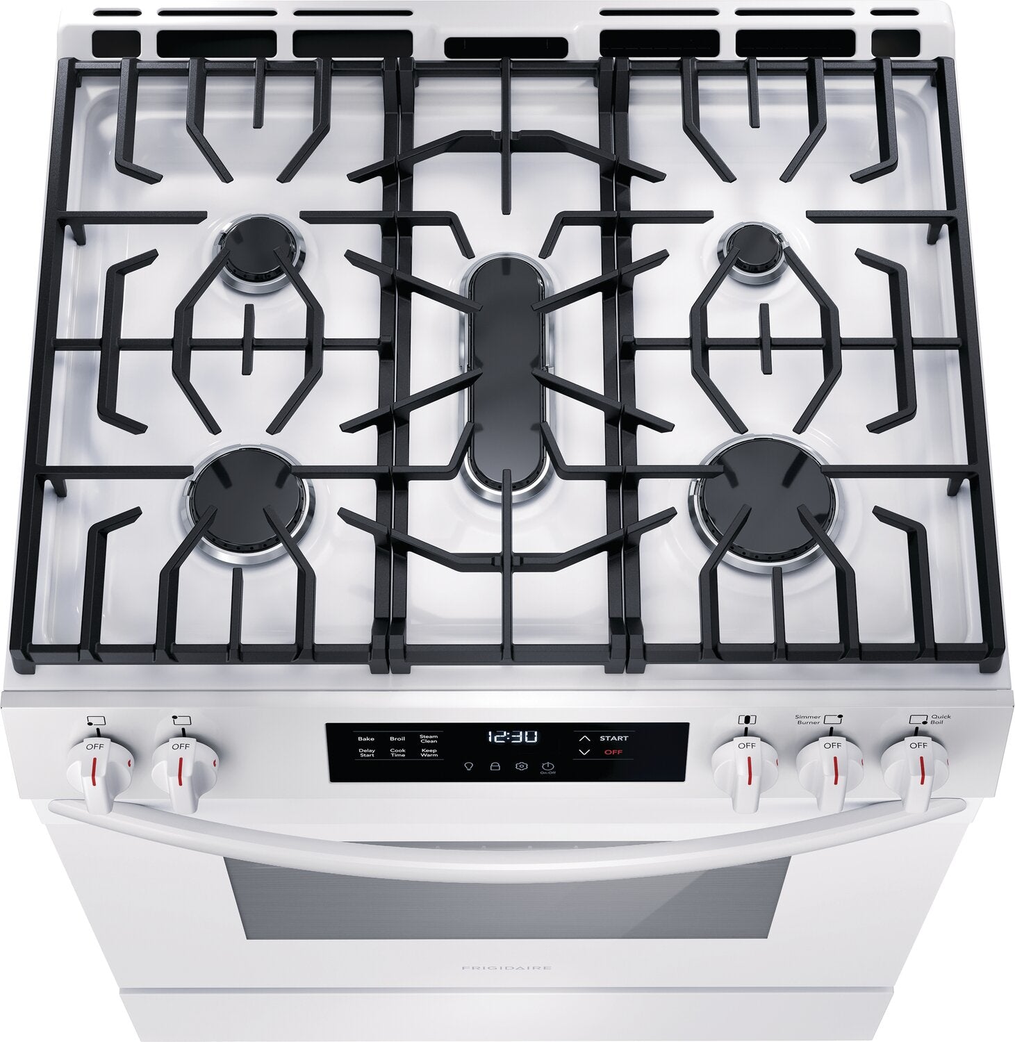 Flexible Five-Burner Cooktop: Quick Boil Burner: Even Baking Technology: Steam Clean Option: Extra Wide Store-More™ Storage Drawer: Dishwasher-Safe Burner Caps: |