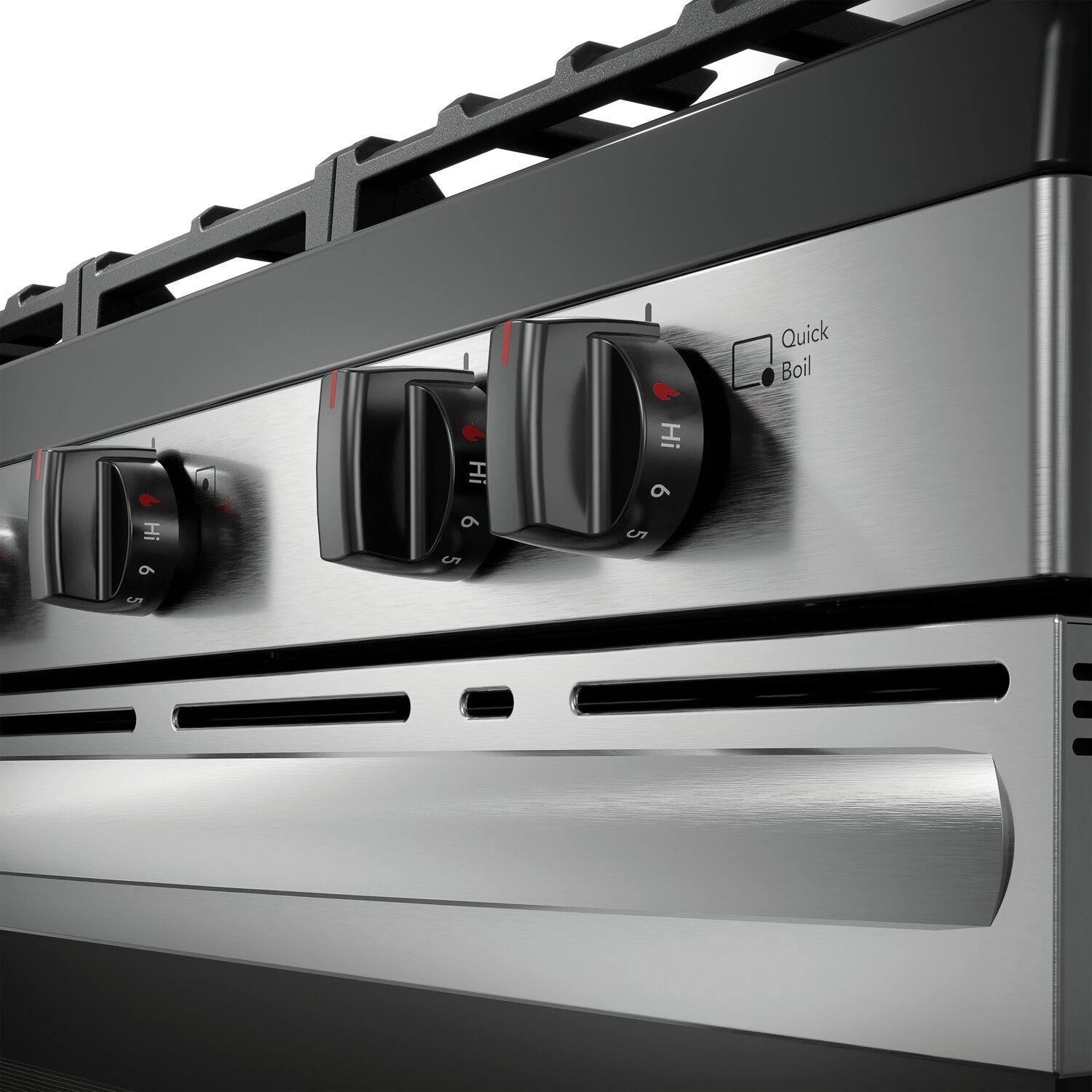 Quick Boil: Flexible Five Burner Cooktop: Even Baking Technology: Continuous Edge-to-Edge Grates: Extra Wide Store-More™ Storage Drawer: Dishwasher-Safe Burner Caps: |