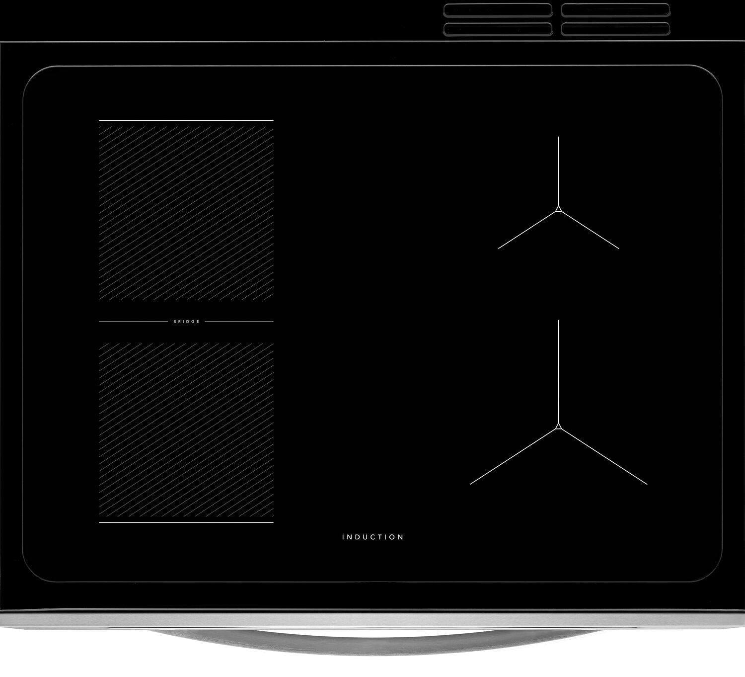 Easy-to-Clean Cooktop: Air Fry: Boils 2x Faster: Convenient Bridge Element: Convection Bake: 30-Minute Steam Clean: |