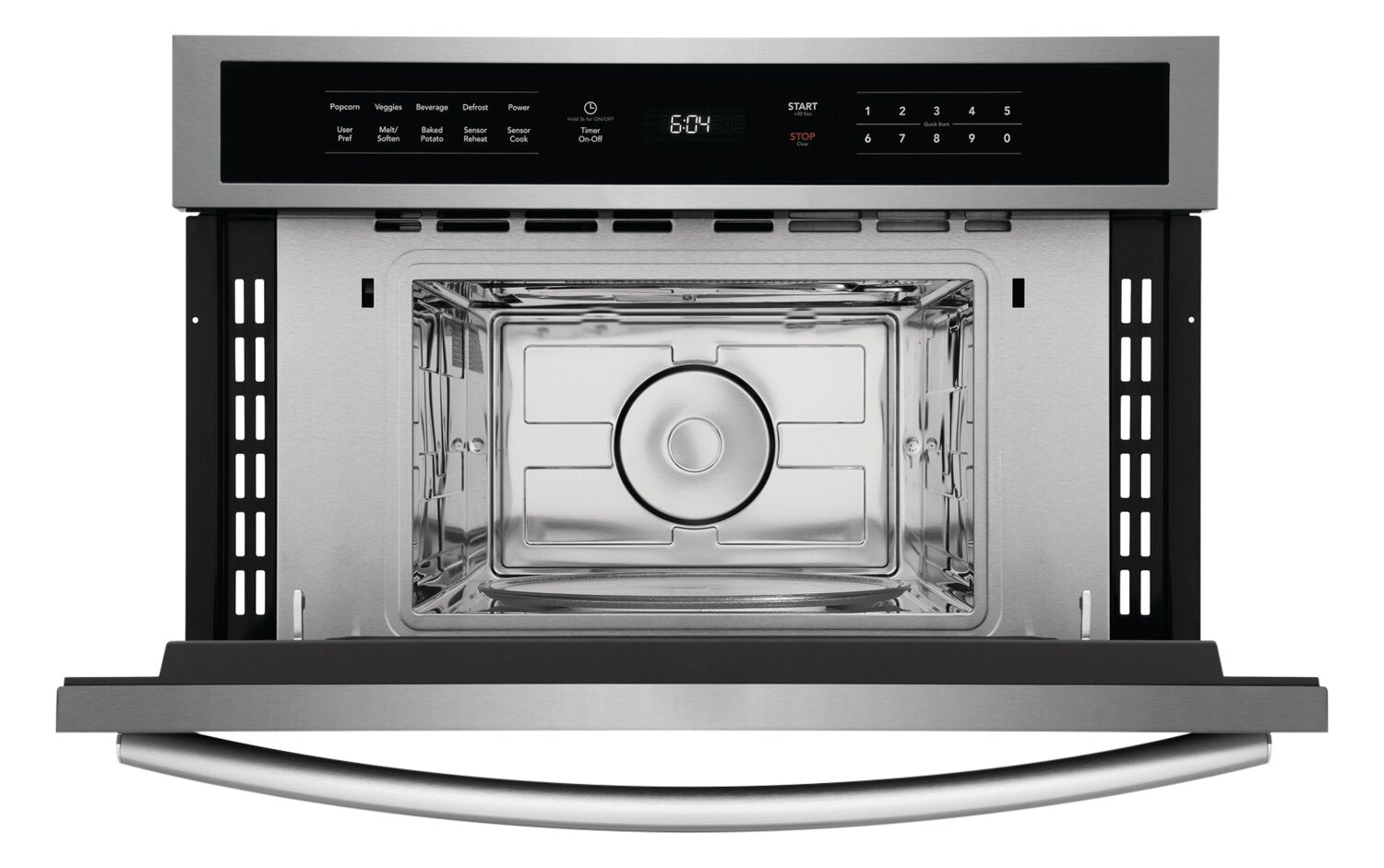 Sensor Cook Technology: Convenient Drop Down Door: Preset Cooking Options: Fits-More™ Design: Bright Interior Lighting: Smudge-Proof® Stainless Steel: |