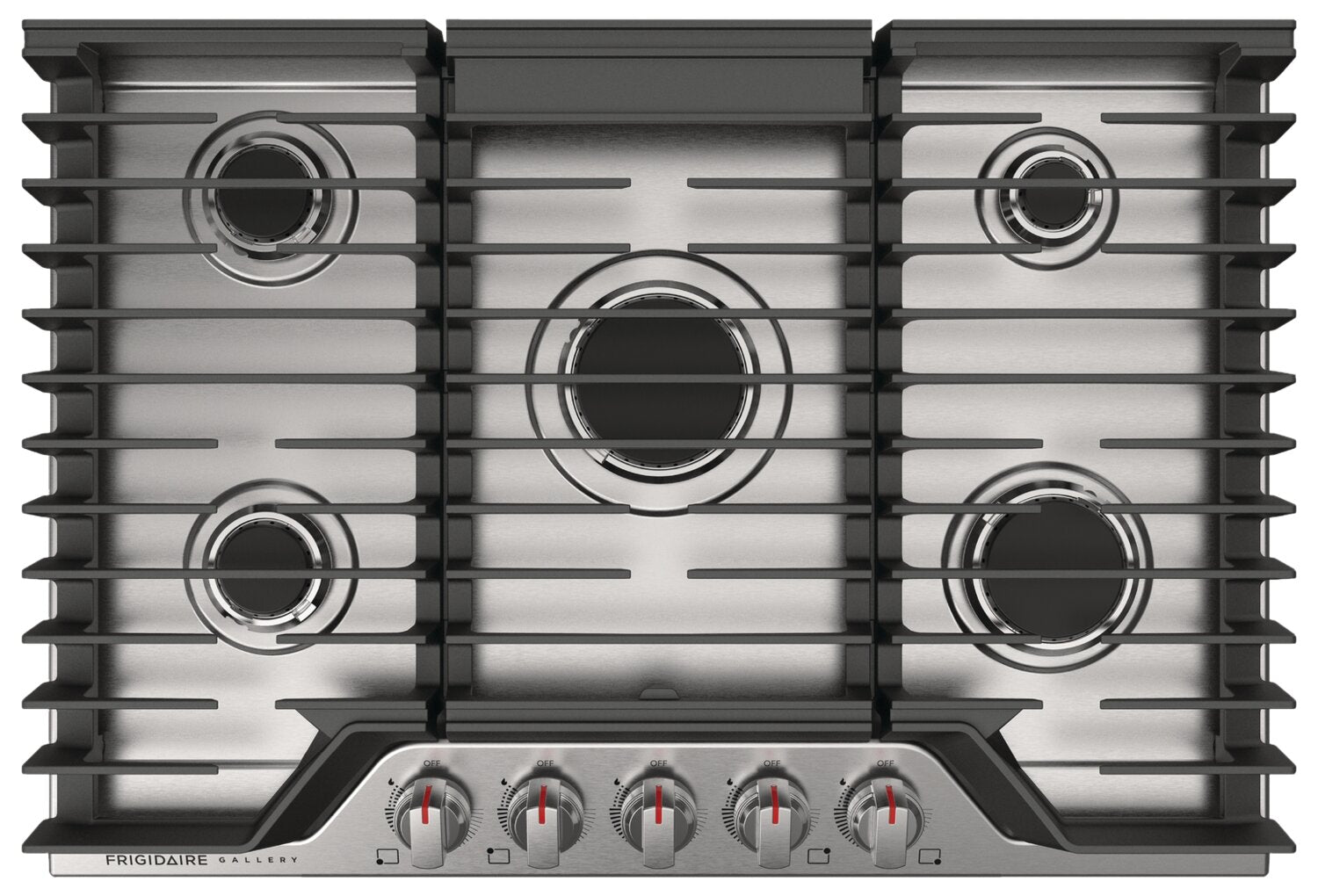 Flexible Cooktop: Backlit LED Knobs: Quick Boil Burner: Low Simmer Burner: Dishwasher-Safe Burner Caps: Continuous Edge-to-Edge Grates: Spill Safe® Cooktop: |