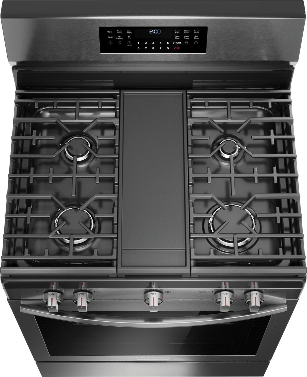 Total Convection: No Preheat: Air Fry: Five Burner Cooktop with Integrated Griddle: Slow Cook: Temperature Probe: Two Cleaning Options: |
