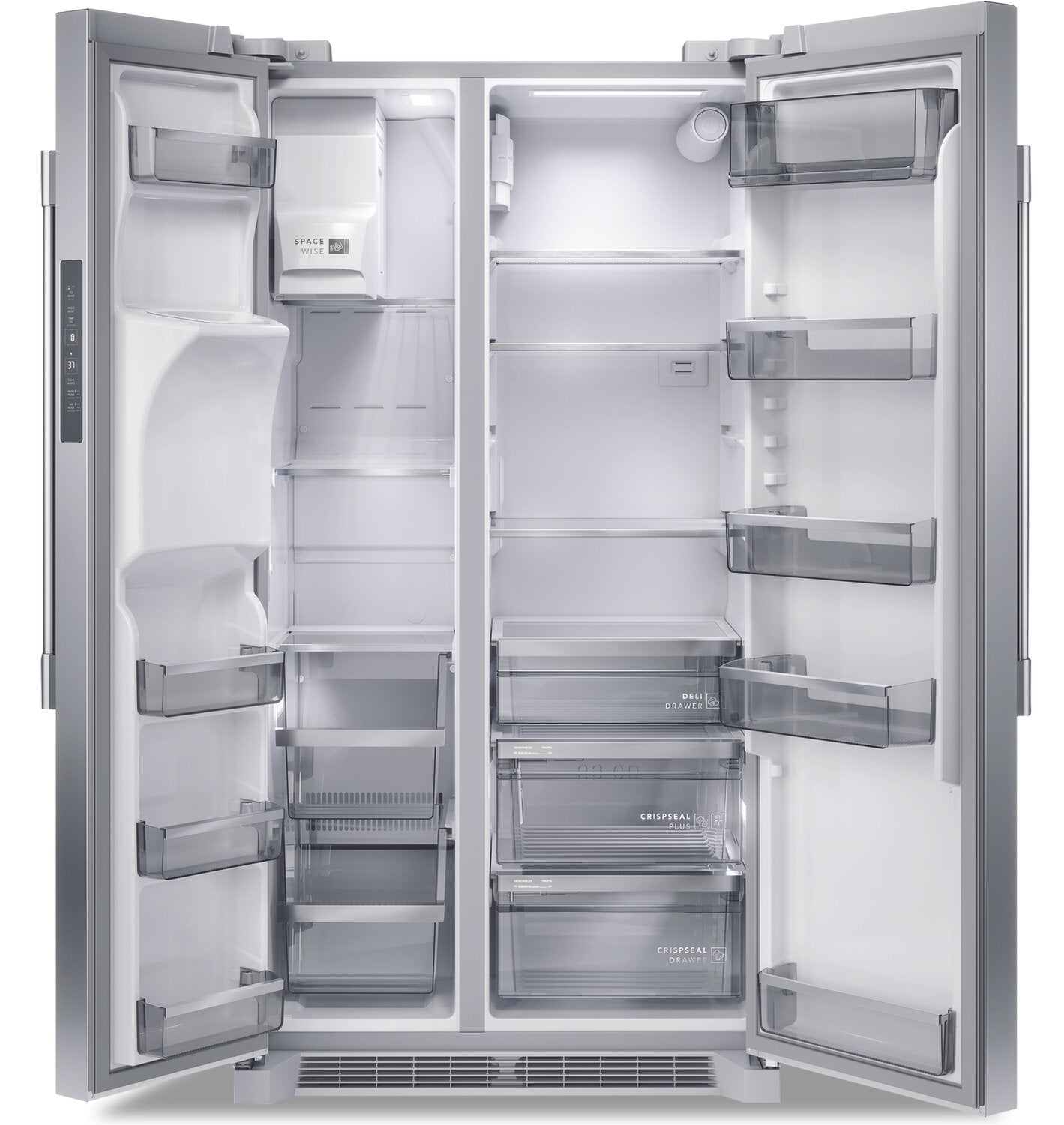 Counter-Depth Design: CrispSeal Plus Crispers: SpaceWise® Organization System: EvenTemp™ Cooling System: Deep Counter-Depth Shelving: Deli Drawer: Exterior Ice and Water Dispenser: ENERGY STAR® Certified: |