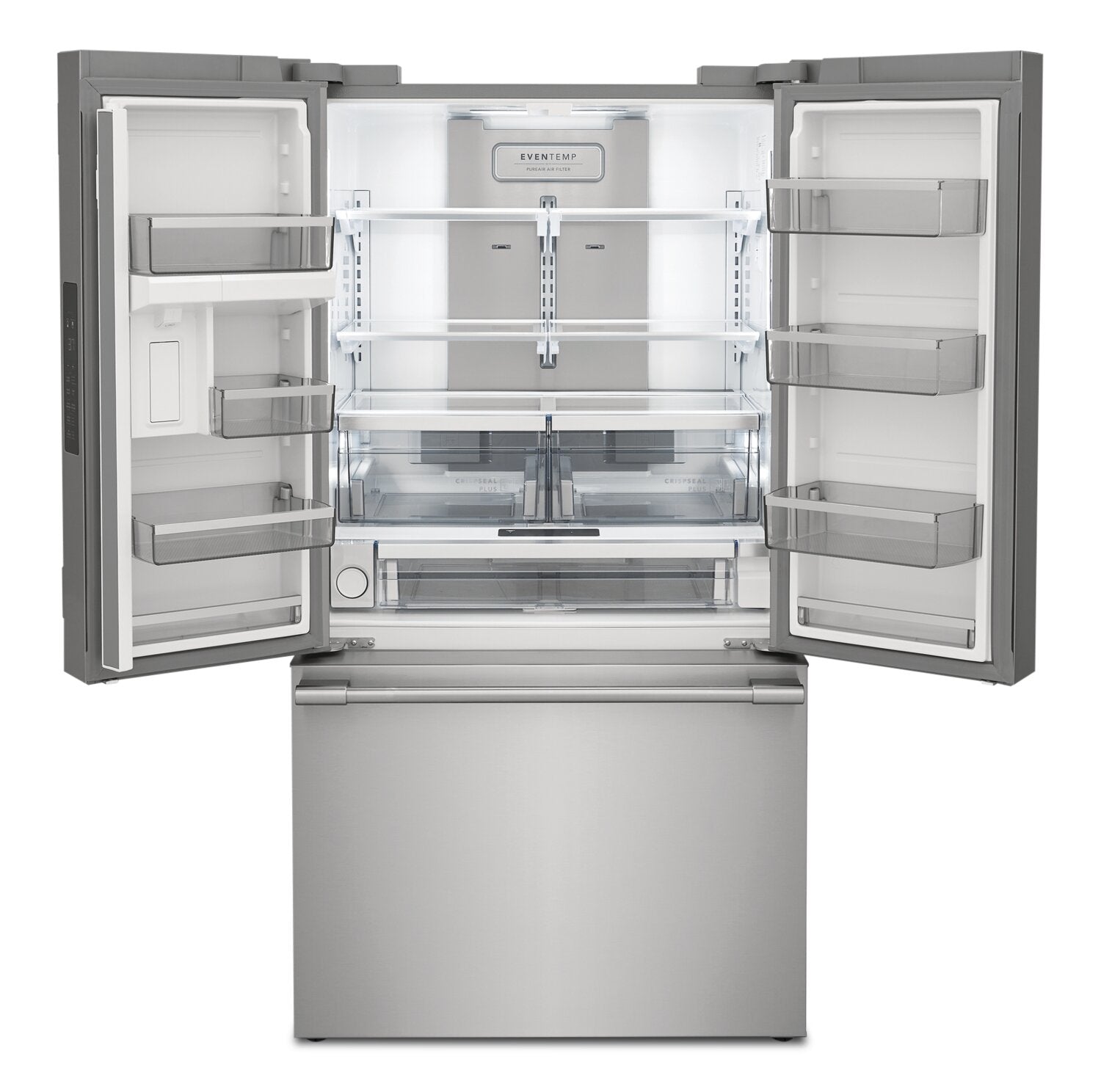 Internal Water Dispenser: CrispSeal Plus Crispers: SpaceWise® Organization System: Adjustable Temperature Drawer: Large Door Bin Storage: Auto-Close Doors: EvenTemp™ Cooling System: ENERGY STAR® Certified: |