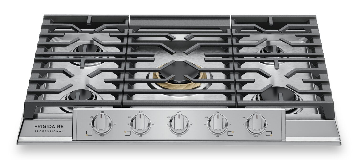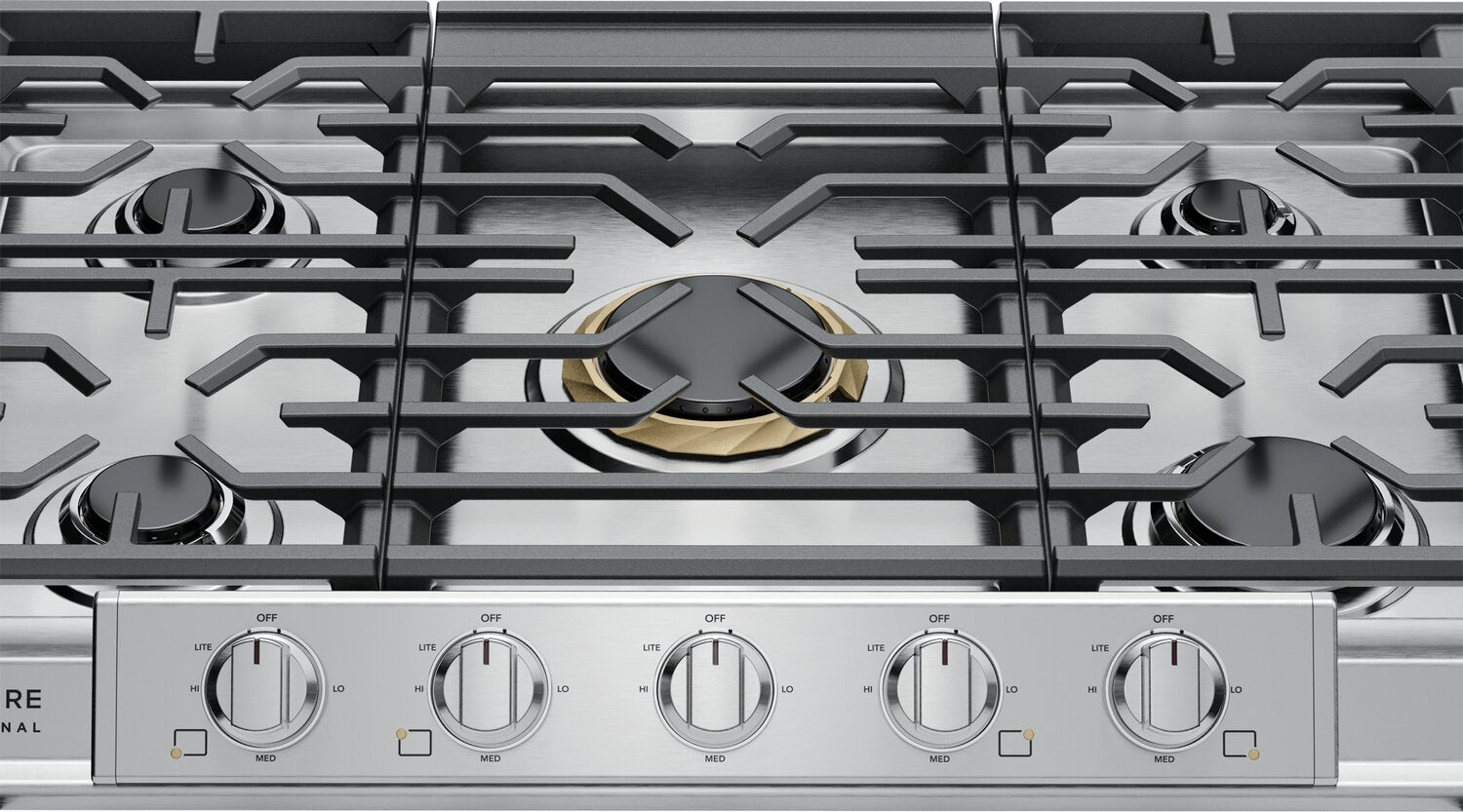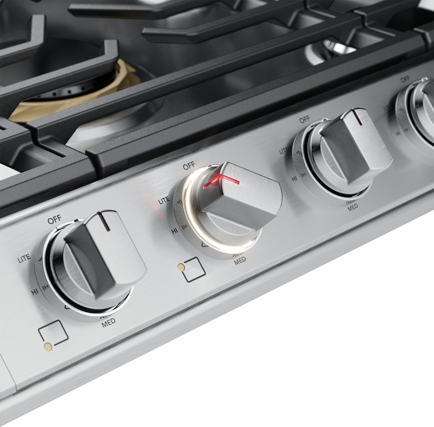 EvenTemp Burner: Five Burners: Backlit LED Knobs: Dishwasher-Safe Grates: Cast Iron Grates: Front Control Design: |