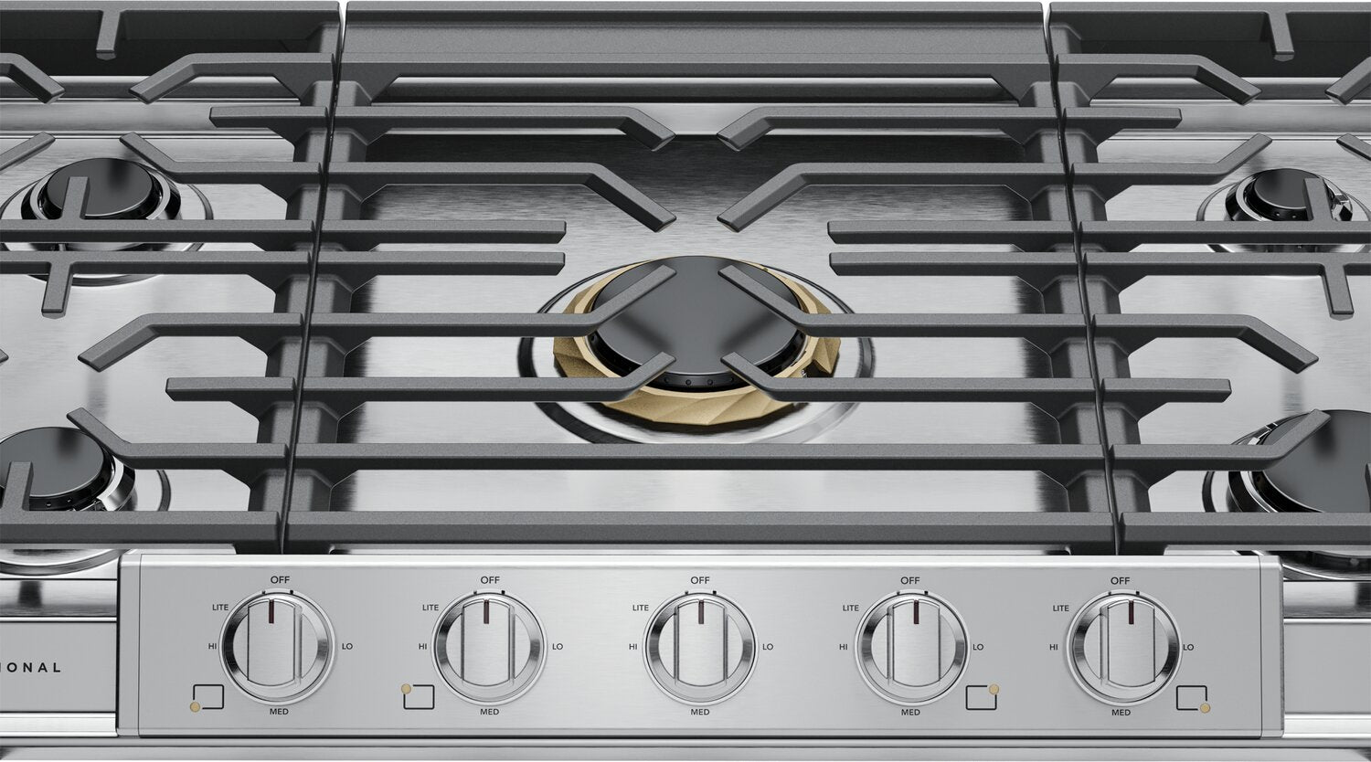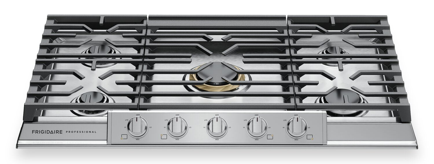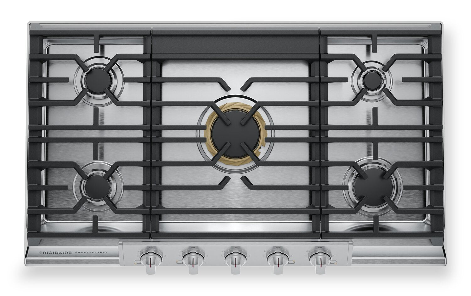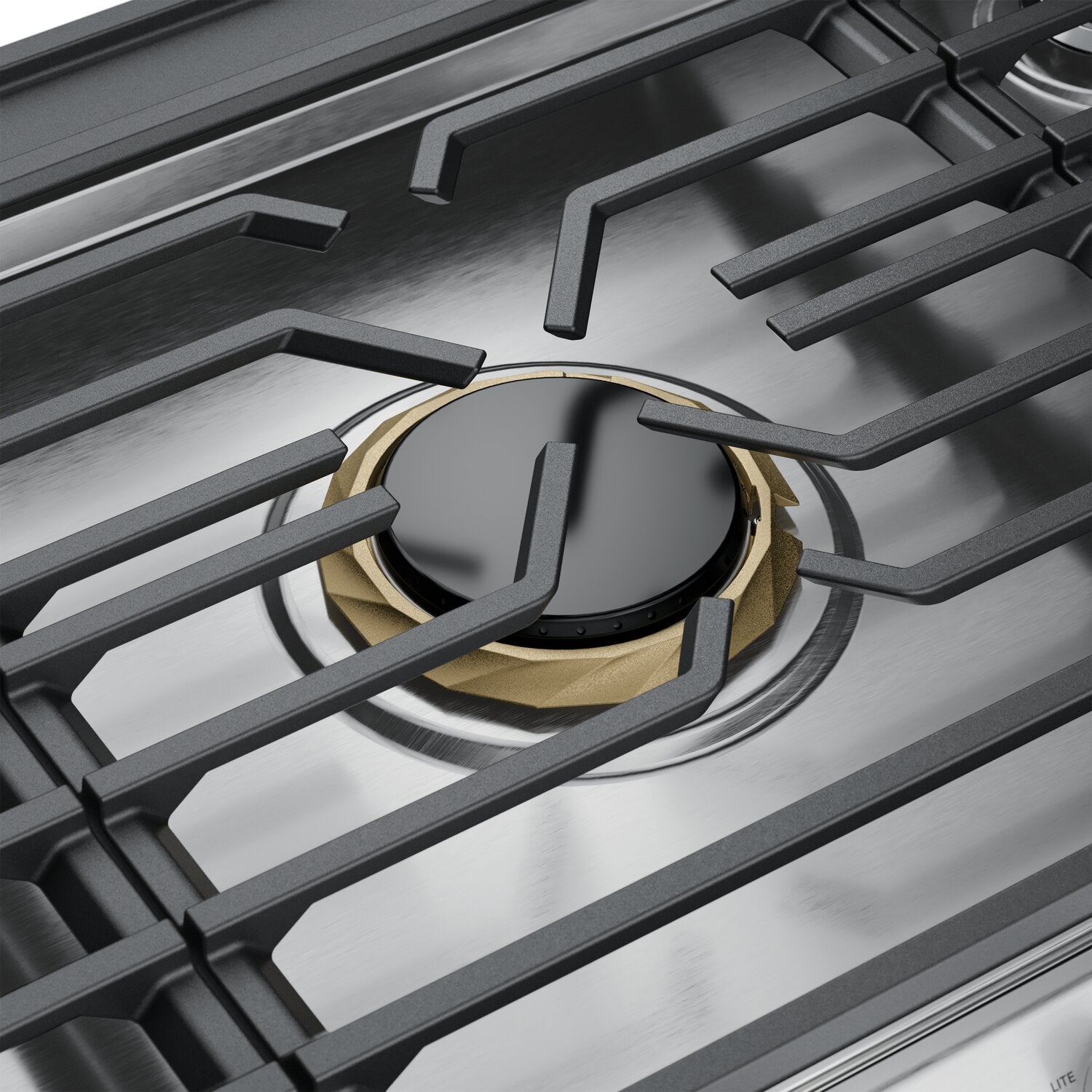 EvenTemp Burner: Five Burners: Backlit LED Knobs: Dishwasher-Safe Grates: Cast Iron Grates: Front Control Design: |