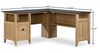 Add a stylish workspace where you need it with the charming good looks and versatile design of this Fritz L-shaped desk. Its spacious desktop surface provides all the room you need for your must-have desk essentials like your laptop, collection of notepads, your array of pens and your morning coffee. It features a file drawer with full extension slides that can hold letter-sized hanging files so you can keep all your important documents organized. Plus, there are two shelves for additional storage space of items like folders and stacks of papers. The Fritz includes two grommet holes and pass-throughs so you can keep your wires neat and out of sight. Attractive from every angle, finished with slate grey accents and detailed with attractive hardware, this wood desk will bring functionality and style to your office.