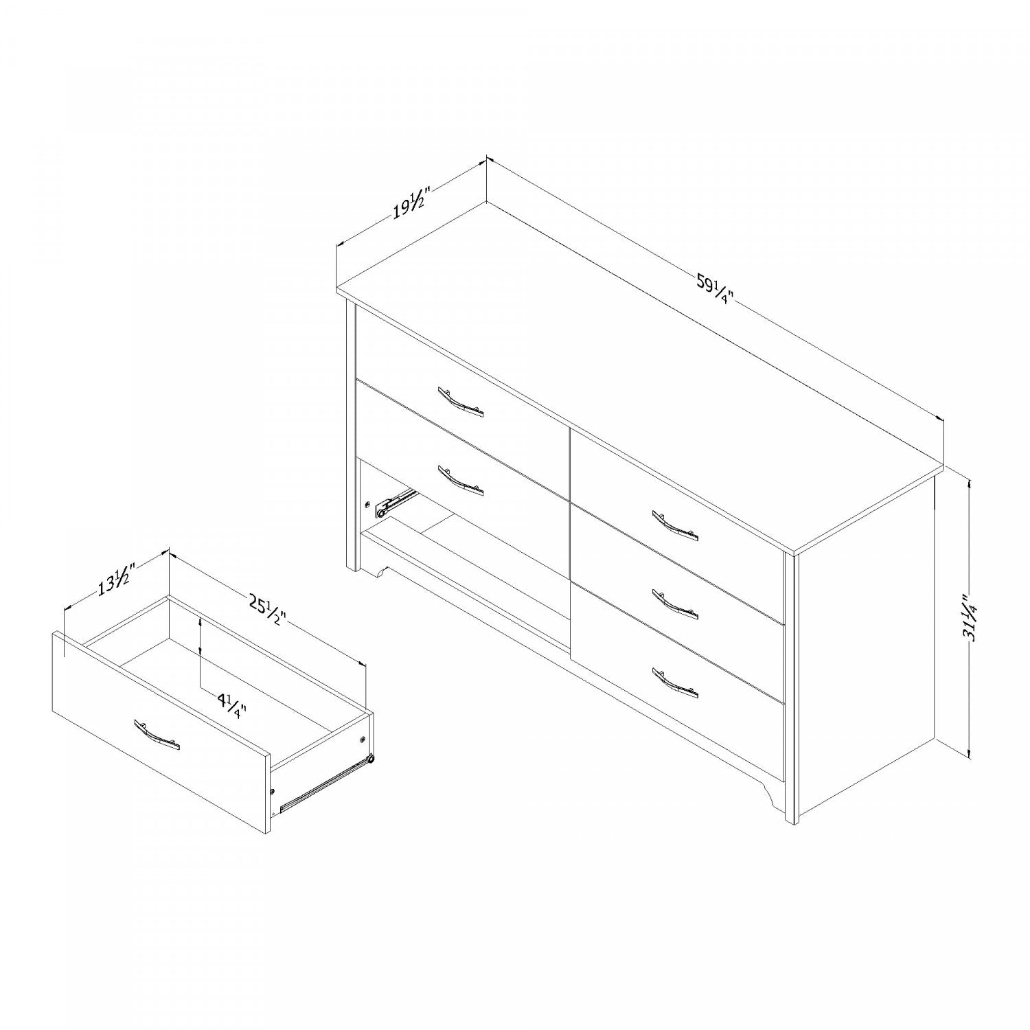A contemporary-style dresser. This elegant dresser will enhance your bedroom decor with its simple look and refined finish. Its straight lines, moldings on each side of the drawers, clean-cut at the bottom, and slim metal handles give it a contemporary look that matches everything! All that's left is to place a few photos on the top surface to personalize your decor. Plenty of storage the six spacious drawers this dresser provides can accommodate a lot of clothes and accessories. Assign a category to each drawer to stay well-organized and optimize your storage. Store your sweaters, pants, sportswear, and underwear separately. Also, if you're sharing this dresser with someone, pick your own side to avoid stepping on each other's toes!