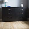 A contemporary-style dresser. This elegant dresser will enhance your bedroom decor with its simple look and refined finish. Its straight lines, moldings on each side of the drawers, clean-cut at the bottom, and slim metal handles give it a contemporary look that matches everything! All that's left is to place a few photos on the top surface to personalize your decor. Plenty of storage the six spacious drawers this dresser provides can accommodate a lot of clothes and accessories. Assign a category to each drawer to stay well-organized and optimize your storage. Store your sweaters, pants, sportswear, and underwear separately. Also, if you're sharing this dresser with someone, pick your own side to avoid stepping on each other's toes!