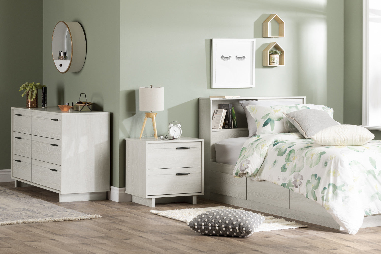 Contemporary lines and trendy finish. This fynn 6-drawer dresser has a unique look that will stand out in any room. The contemporary lines are highlighted by the different sized drawers and trendy metal drawer pulls. Access is made easy with metal slides on each side, providing quiet and smooth use. This statement piece can be used in any room in need of additional, stylish storage. Trendy storage and organization featuring 6 large drawers with sleek metal drawer pulls, this dresser provides plenty of room for clothes, linens or general storage. With 6 different compartments, staying organized has never been easier. You can even use the flat top for additional organization or feature your favorite decorations.