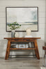 Take the best designs from the workshop and put them front and centre in your living room with this Galveston sofa table. Made with thick pieces of solid acacia wood, this sturdy table is ready for regular use in your home. Intentional distressing along each surface emphasizes the rustic motif. And reinforcing the frame is a metal stretcher – the ebony finish highlights the dark whorls of the visible woodgrain. Finally, two functional drawers and a fixed centre shelf offer extra spaces to organize your tableside accessories.
