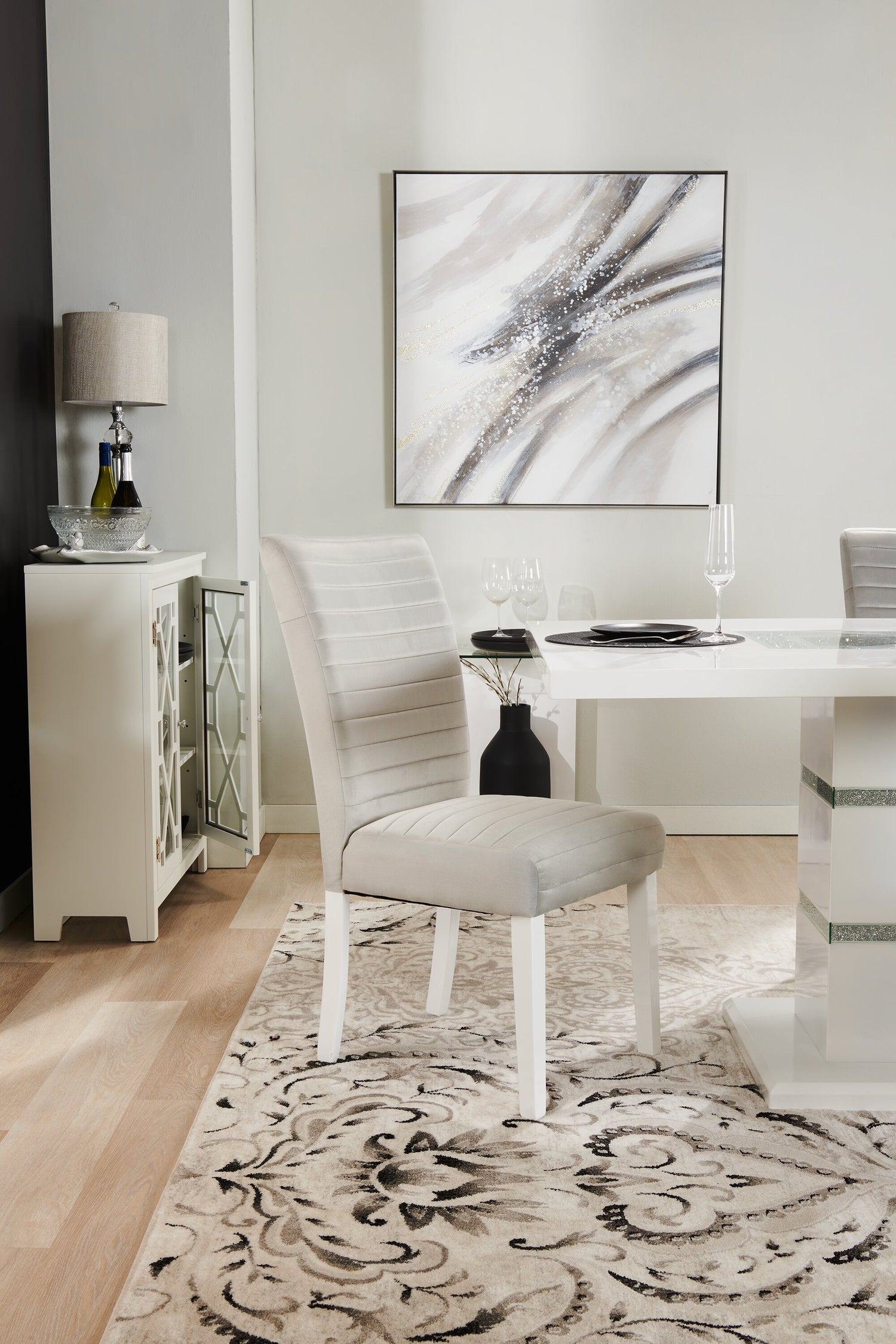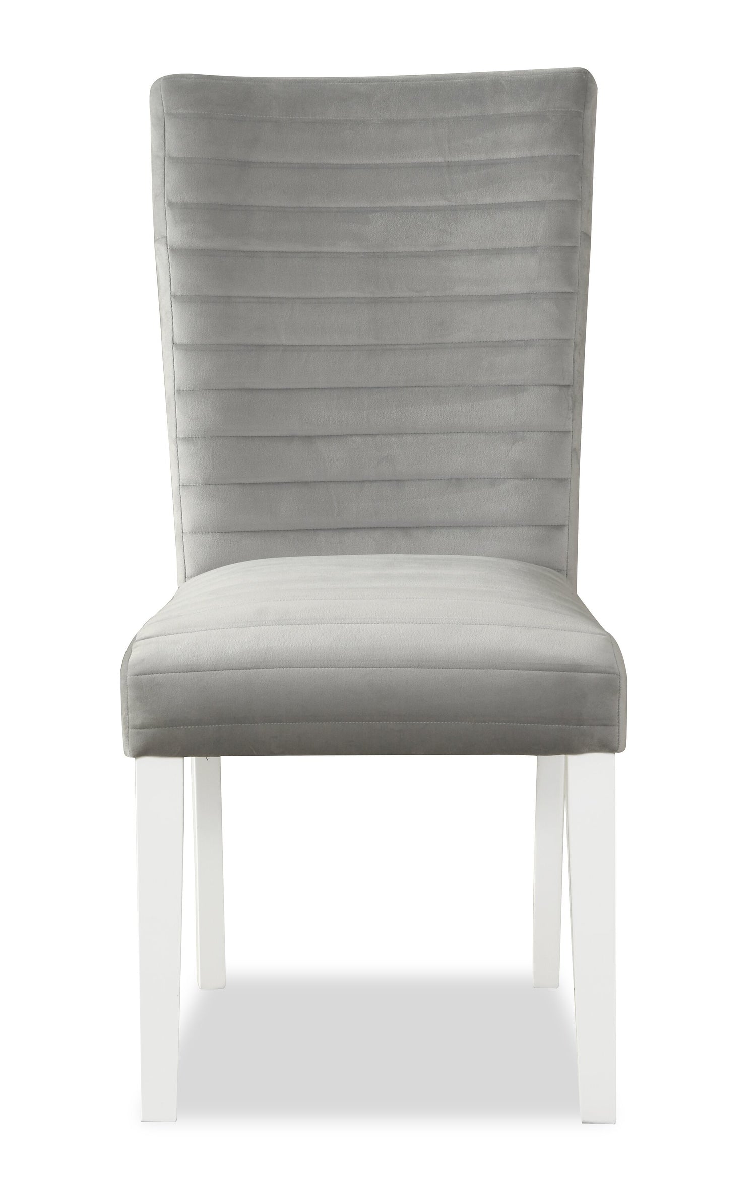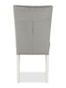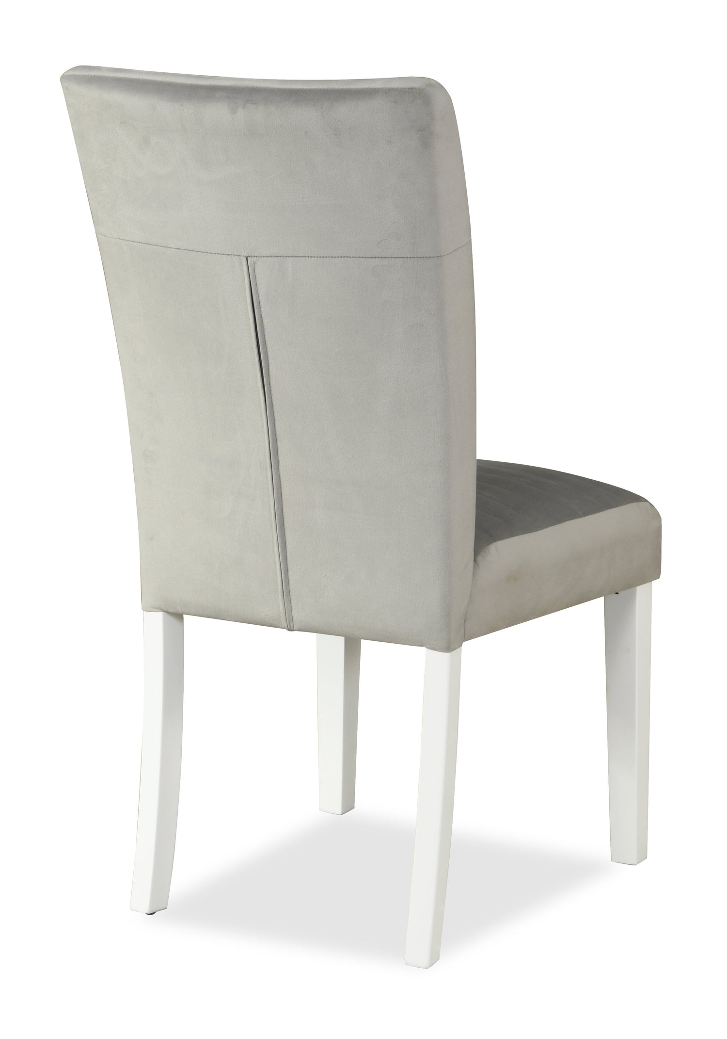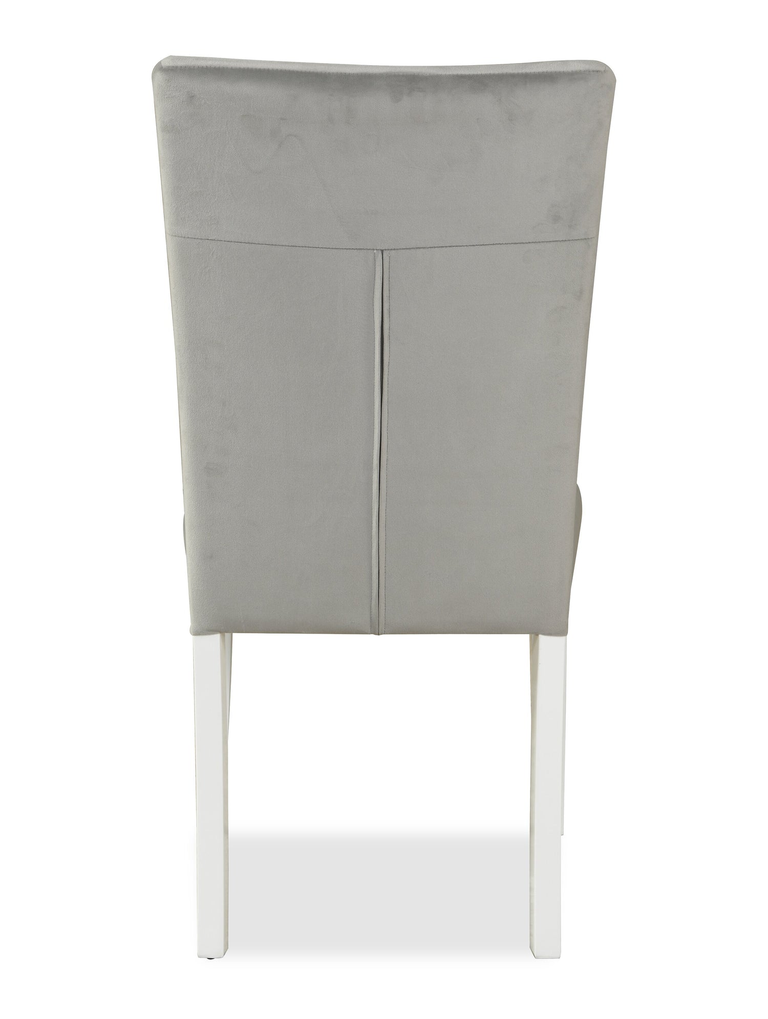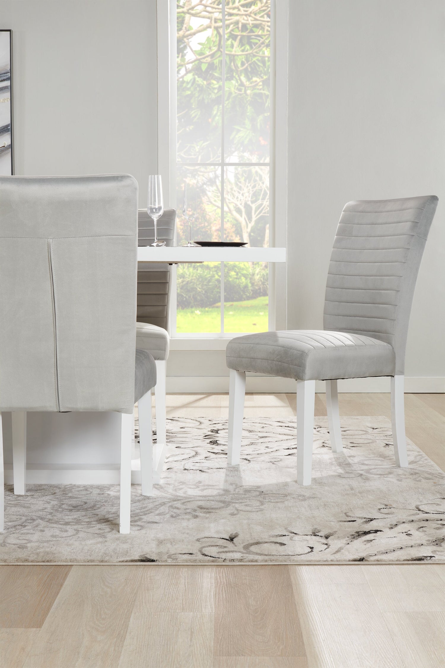 Dazzle your dinner guests with the softness of this Garbo dining chair. Soothing velvet is finished in a light grey tone for a luxurious look that won't outshine your dining room decor. Padding this piece is a thick layer of high-density foam, sewn into horizontal channels to emphasize plushness. A minimalist design allows the glossy white legs to shine without distracting from the modern details. Let style and elegance join you for a meal with this Garbo chair.