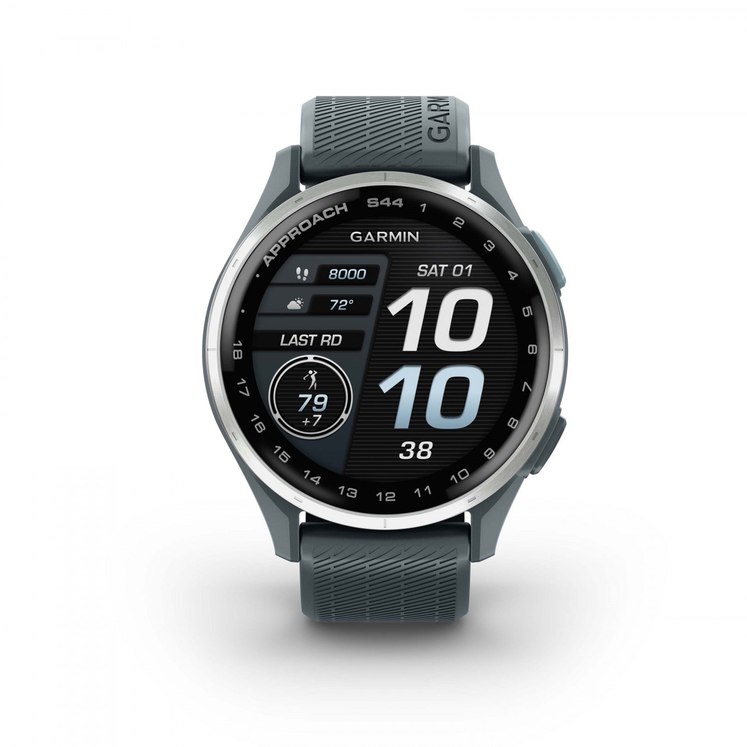 | Key Features | COLORFUL AND CAPABLE - The stunning 1.2" AMOLED touchscreen display makes it easy to see key yardages to the green, hazards and layups on the colorful course maps. PLAN YOUR SHOT - Get distance to the front, middle and back of the green. Plus, navigate bunkers, water hazards and layups, and use the PinPointer feature to see the direction of the pin. ENHANCE YOUR GAME - Gain premium golf features with a Garmin Golf™ membership ($9.99 USD/month; $99.99 USD/year), including enhanced CourseView maps, green contours, touch targeting and more. Members can also add PlaysLike Distance to their Approach S44 smartwatch. TRACK YOUR CLUBS - Pair with optional Approach® CT1 club tracking tags or Approach® CT10 club tracking sensors (both sold separately) for shot-tracking capabilities, so you have a clearer picture of which parts of your game to focus on. KEEP SCORE - Easily keep score as you play, and upload to the Garmin Golf app for advanced stat tracking and handicap calculation. STAY CONNECTED - Get smart notifications on your watch, including emails, texts and alerts when paired with your iPhone® or Android™ smartphone. Plus, use the sunrise and sunset widget so you know the best time of the day to play. 43,000+ PRELOADED COURSES - Your watch comes preloaded with more than 43,000 color maps of golf courses around the world. Get enhanced full-color CourseView maps with a Garmin Golf membership. BATTERY LIFE - Get up to 15 hours of battery life in GPS mode and up to 10 days in smartwatch mode. PRELOADED ACTIVITY PROFILES - Improve your strength and mobility with preloaded activity profiles for strength, yoga, cardio and much more so you can hit the ball farther and prevent injuries. |