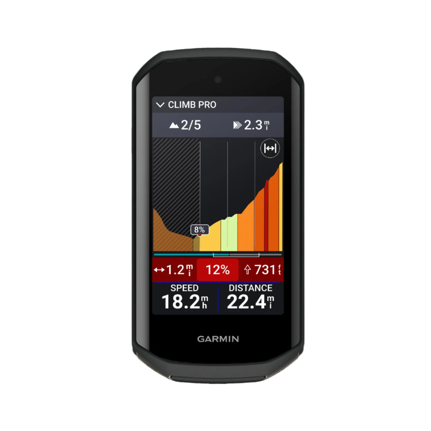 | Key Features | Vivid Color Display - See your stats and maps in greater detail than ever before with a vivid color touchscreen display and new ways to view your data. Battery that's Ready for the Ride - In demanding use cases, get up to 20 hours, or get up to 60 hours in battery saver mode. Road Hazard Alerts - Get alerts for road hazards reported by fellow cyclists, and contribute your own edits. GroupRide - Stay connected on group rides with in-ride messaging, live locations and incident detection alerts; plus, add fun and competition with in-ride leaderboards for climbs and postride awards. Garmin Cycle Map and Wi-Fi Map Manager - Ride with preloaded maps that include worldwide MTB trail data from Trailforks, plus you can add, swap or update maps directly on your Edge via Wi-Fi. Power Guide and Real-Time Stamina Insights - Manage your efforts with recommended power targets throughout a course. The power guide feature now incorporates real-time stamina and wind to adjust your targets while you ride. Built-in Speaker - Hear workout and navigation verbal prompts, and alert riders and pedestrians ahead of you with a loud on-device bike bell. Event Adaptive Training - When it’s time to focus on training, Edge 1050 delivers. It works seamlessly with our free Garmin training plans for cyclists. Event adaptive training delivers personalized workouts that adapt to your performance and recovery. Garmin Pay™ Contactless Payments - Make purchases on the go with Garmin Pay contactless payments with participating providers. Smart Notifications - Receive texts and alerts on your Edge cycling computer when paired with your compatible smartphone. On-Device Course Creator - Easily create courses right on device by using the responsive touchscreen, and see road surface type on the map for more awareness while planning and riding. |