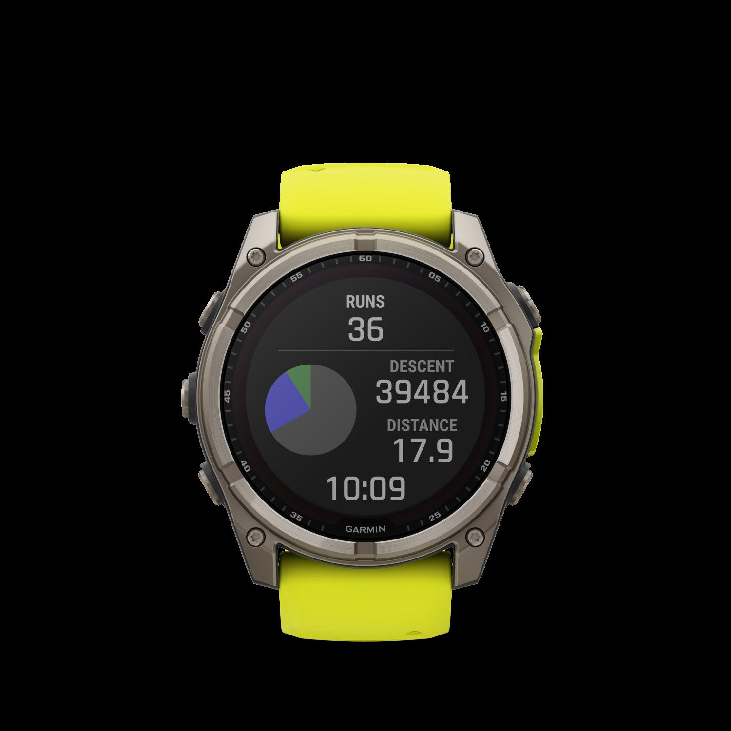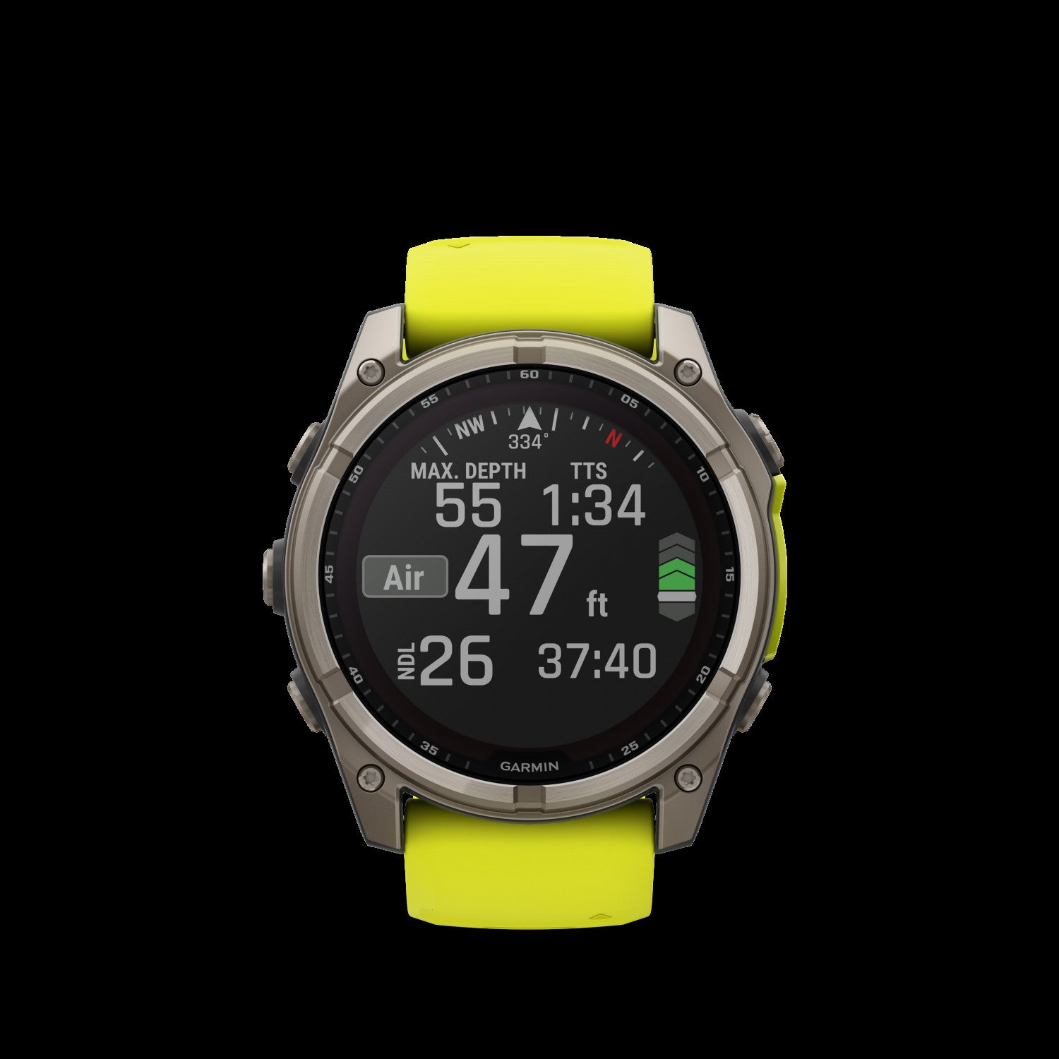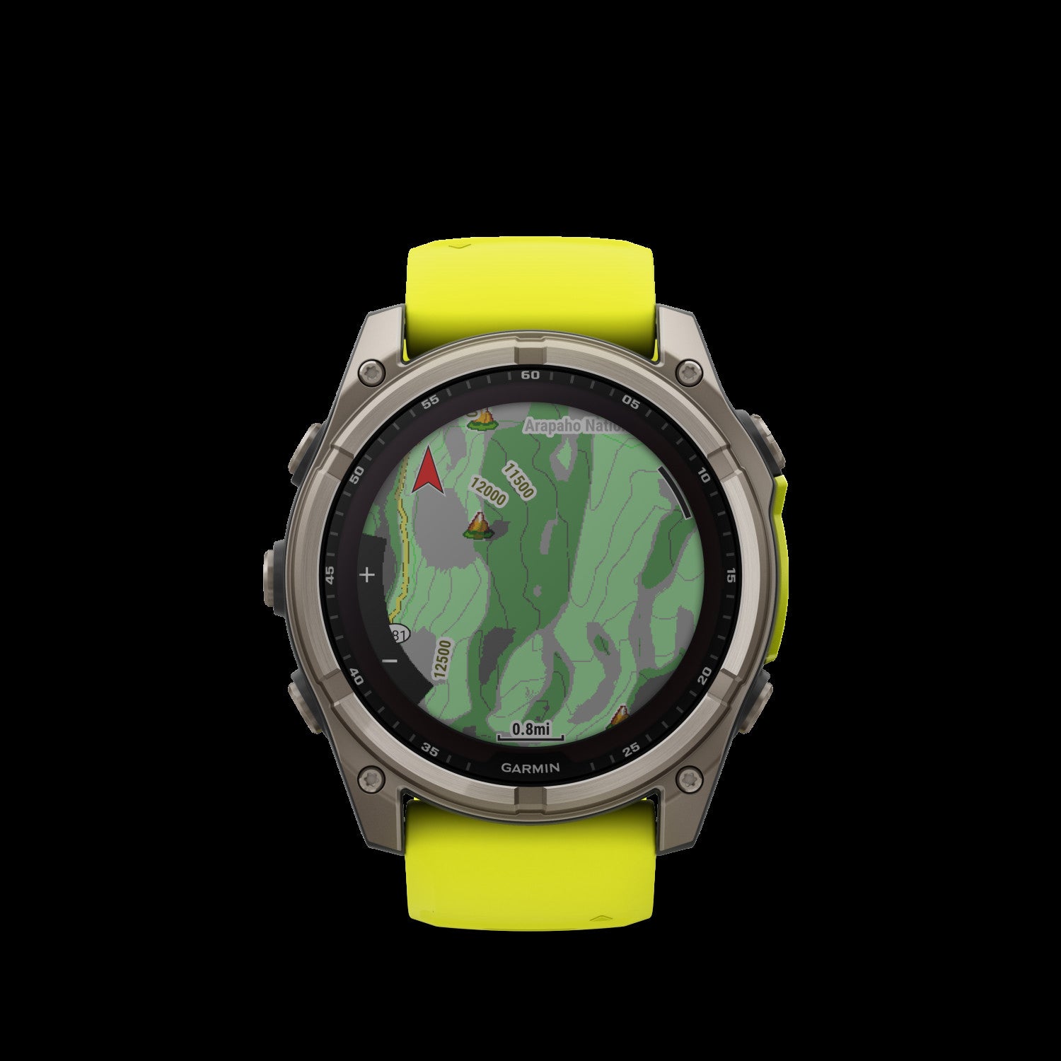 The fēnix® 8 multisport gps smartwatch is built for serious athletes and outdoor adventurers who want to push beyond their limits. It features a 1. 3” solar charged display with scratch-resistant sapphire lens, durable titanium bezel and powerful built-in led flashlight for after-dark visibility. A built-in speaker and mic enable you to make and take calls from your wrist when your watch is paired to your smartphone. Power up your body’s performance, endurance and resistance to injury with targeted strength training plans and a full range of sport-specific workouts. Performance insights help manage your exertion and build stamina, while training readiness features show how much recovery time you need between workouts, based on 24/7 health and wellness monitoring of heart rate, respiration, stress, sleep and more (data presented is intended to be a close estimation of metrics tracked). Take to the trails with built-in abc sensors and preloaded topoactive maps. The dynamic round-trip routing feature helps simplify the planning of your runs or rides — letting you set your target distance and receive turn-by-turn directions that adjust to get you back to your start on schedule. Enjoy extended off-grid adventures with solar power providing up to 92 hours of battery life in gps mode (assumes continuous use for entire period in 50,000 lux conditions). Plus, a 40-meter dive rating and leakproof metal buttons let you reach new depths of adventure. Additional features include music storage, garmin pay™ contactless payments (with a supported country and payment network), smart notifications (compatible smartphone required) and more.