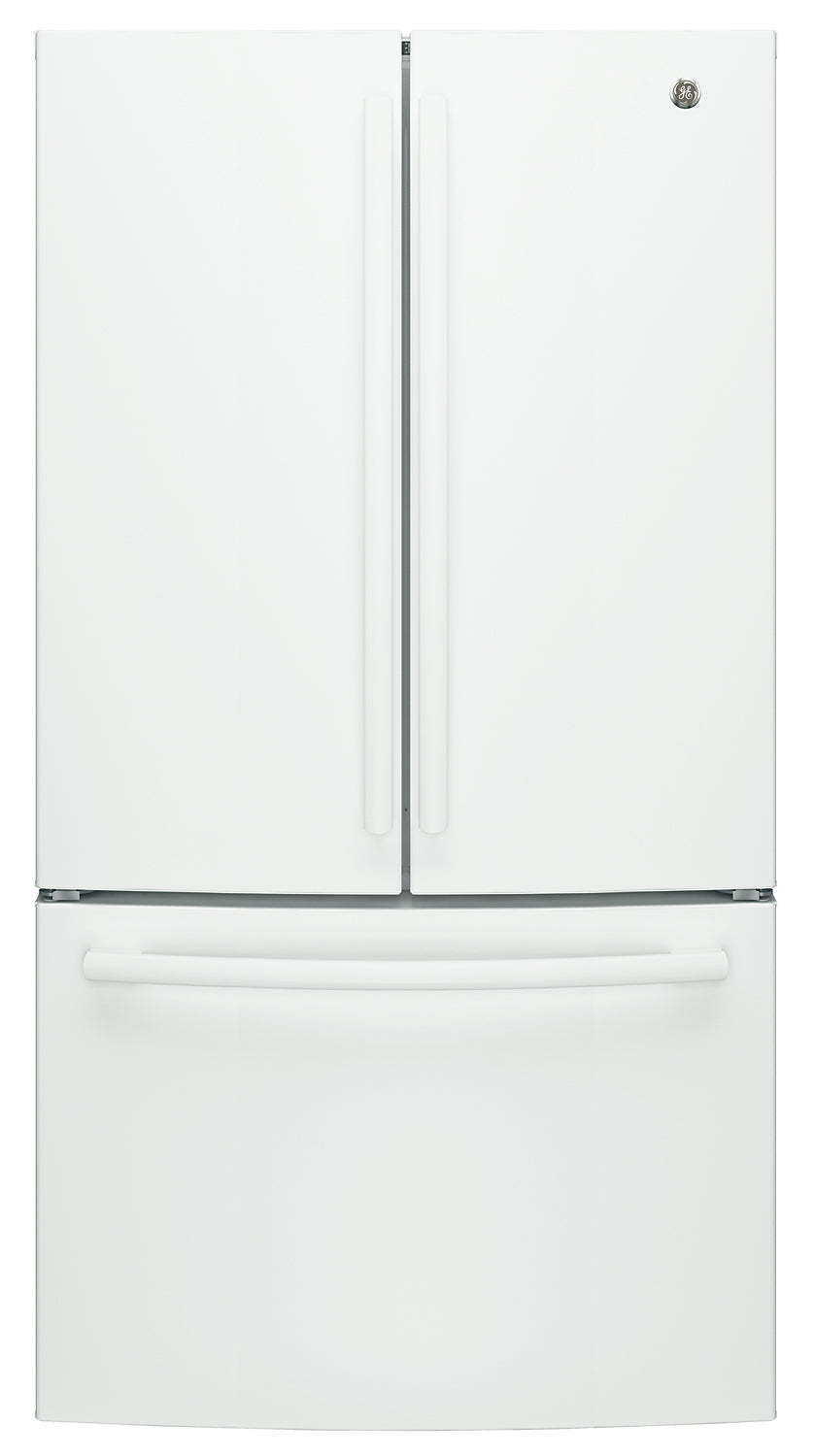 This simple yet stylish French-door refrigerator by GE packs an array of convenient features into 27 cubic feet of cold storage space. Easily make room for tall or oddly-shaped items with the QuickSpace™ shelf that smoothly slides out of the way, while two humidity crispers create an optimal temperature to keep your fruits and veggies fresh as can be. Enjoy a glass of icy chilled water any time with the filtered water dispenser and factory-installed ice maker – both are installed internally to keep the exterior looking sleek.