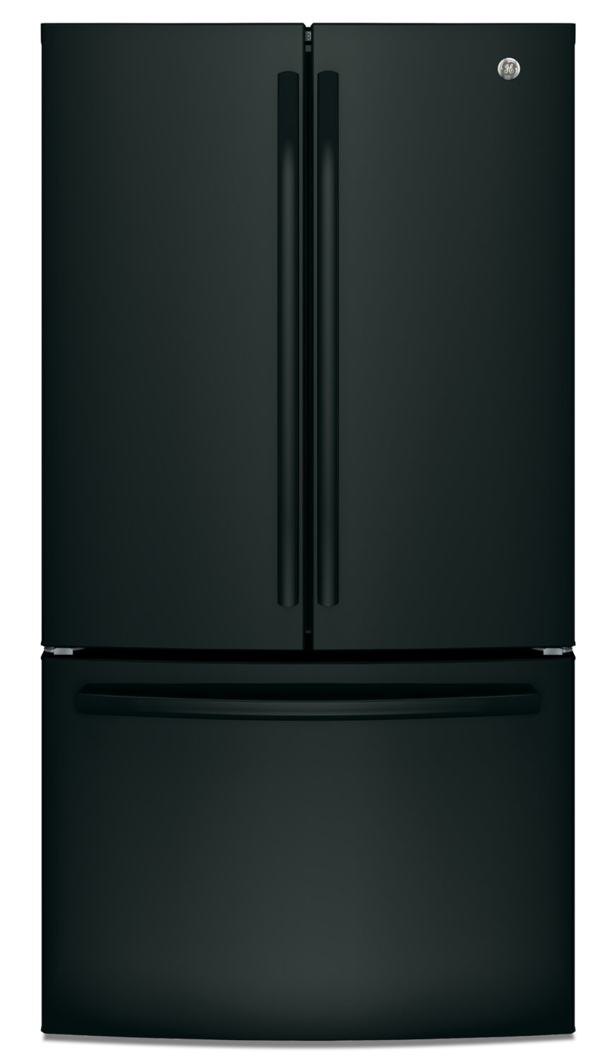 Make the most of your cold storage space when you add this GE 27-cubic-foot French-door refrigerator to your home. The spacious interior features rows of sturdy glass shelving that’s also spill-proof to help contain inevitable messes. Two humidity-controlled crispers keep your fruits and veggies at peak freshness, while a full-width pantry drawer is the perfect spot for charcuterie boards or sheet cakes. Inside the freezer, two-level storage makes it easy to keep things organized. As well, the internal dispenser delivers chilled, filtered water with the touch of a button.