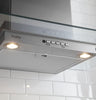 Keep odours under control and your kitchen from becoming a smoky mess with this glass canopy chimney range hood from GE. The wall-mounted hood operates at four different speeds so you can match the smoke dispersal to the situation. Halogen lights and backlit controls make it easy to operate even in darker conditions. Plus, the stylish appearance glass canopy will help your kitchen look modern and marvelous.